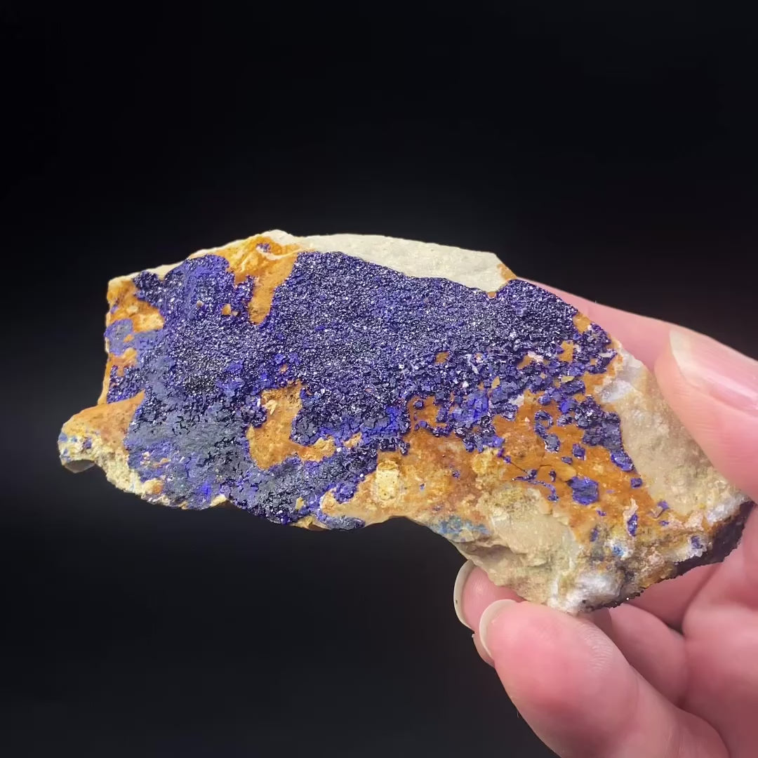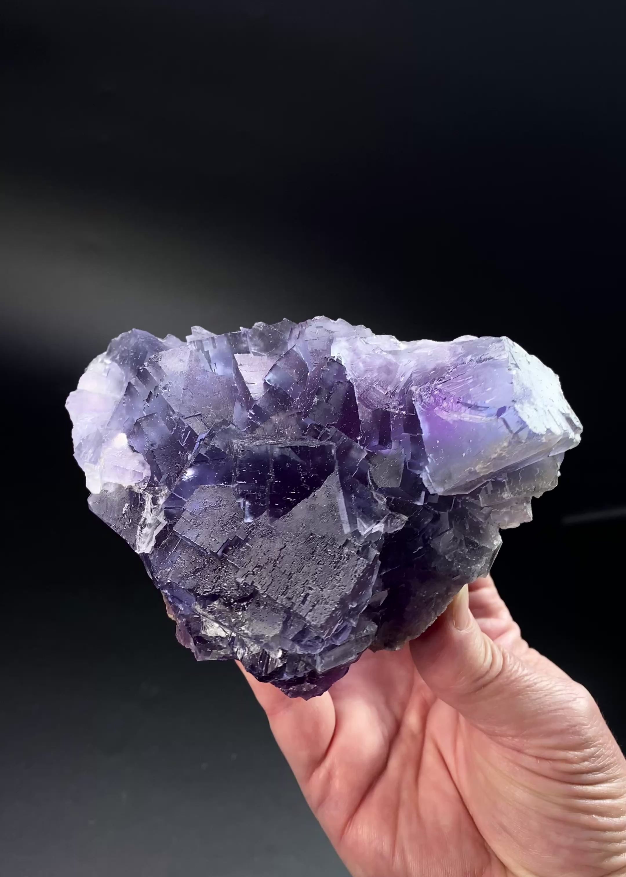 Blue and Purple Cubic Fluorite Cluster with Rainbow Iridescent Iron Oxide Surface