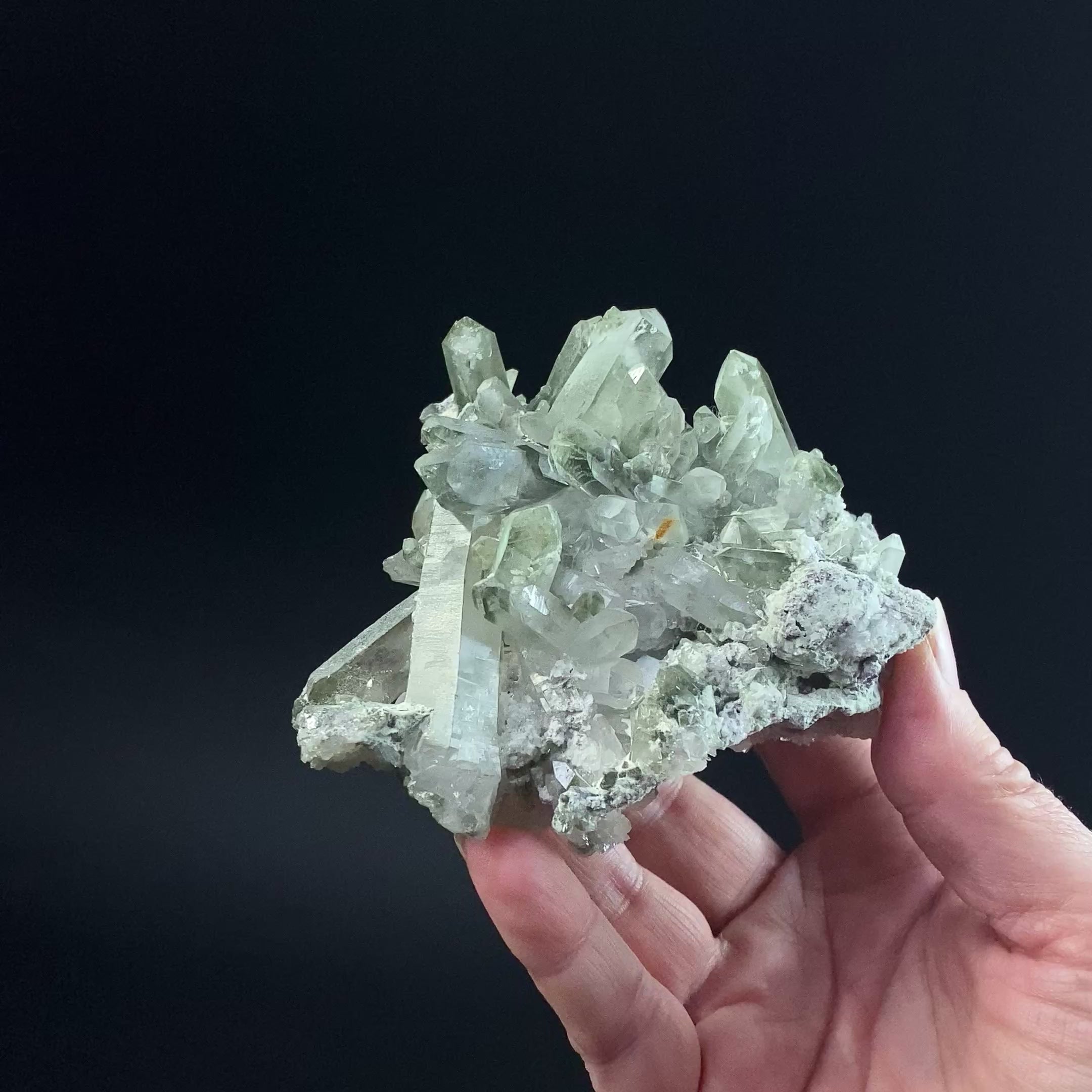Chlorite quartz is a fascinating variety of quartz that contains inclusions or coatings of chlorite, giving it a distinctive green hue. This combination makes it a powerful energy cleanser, often used to align and balance the chakras. Chlorite quartz is also known for its ability to enhance spiritual development and psychic abilities. The chlorite inclusions can appear as wisps or phantom formations within the quartz, creating beautiful and unique patterns. This crystal is highly valued in both jewelry making and crystal healing practices for its aesthetic and metaphysical properties.