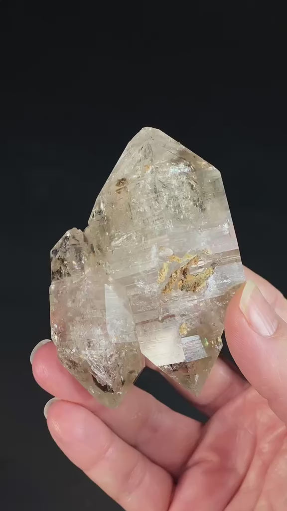 Twin Terminated Fenster Quartz Crystal with Fluorescent and Phosphorescent Inclusions