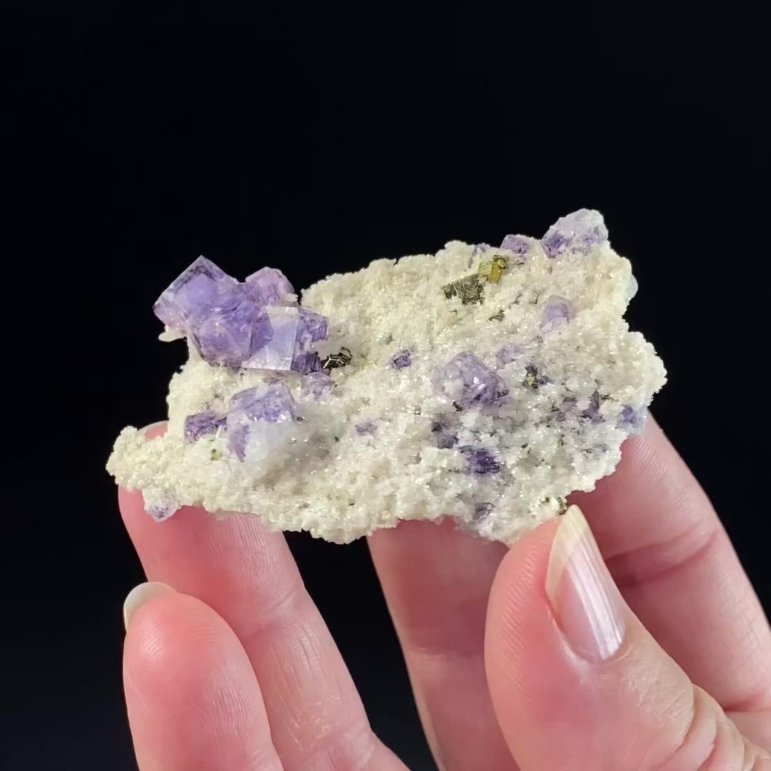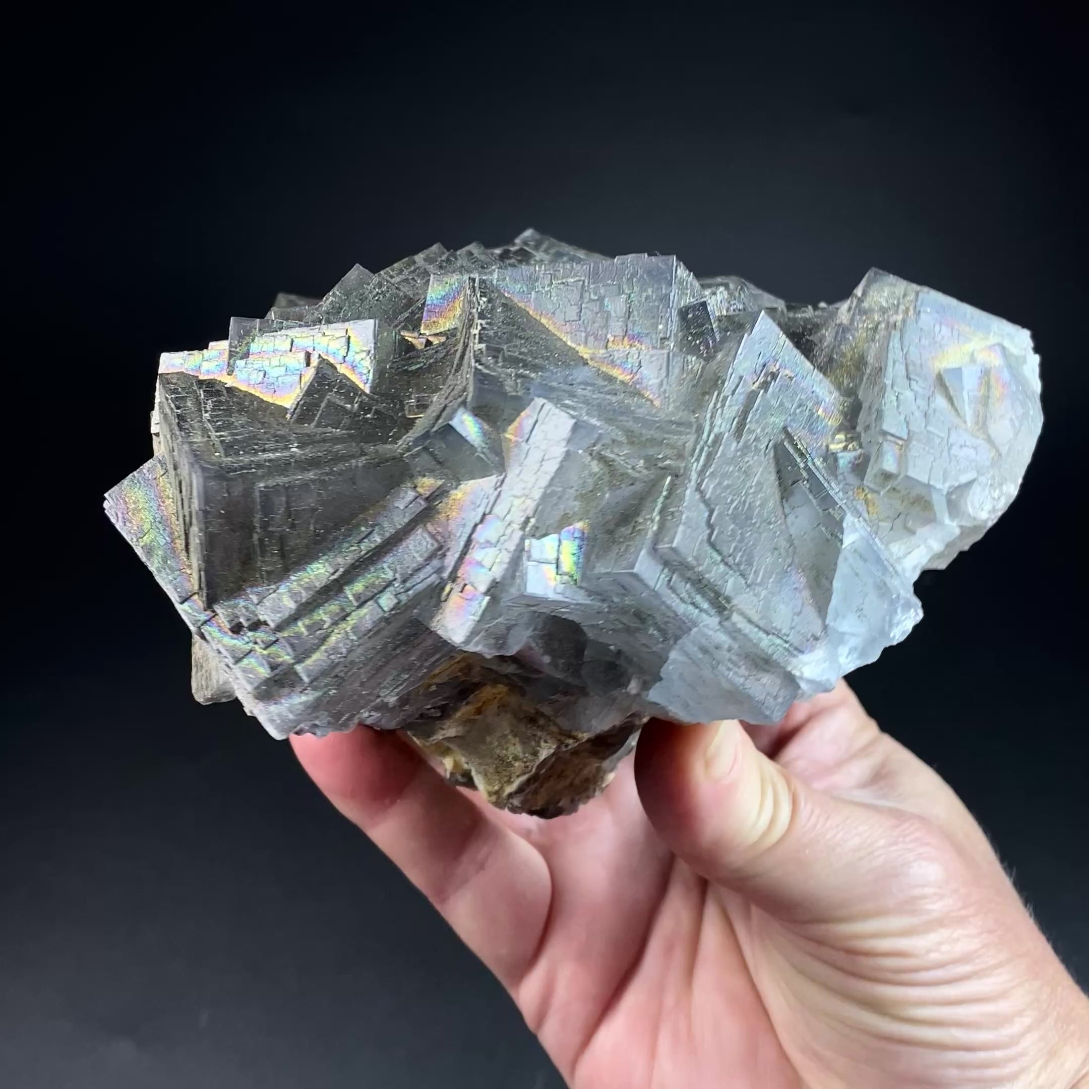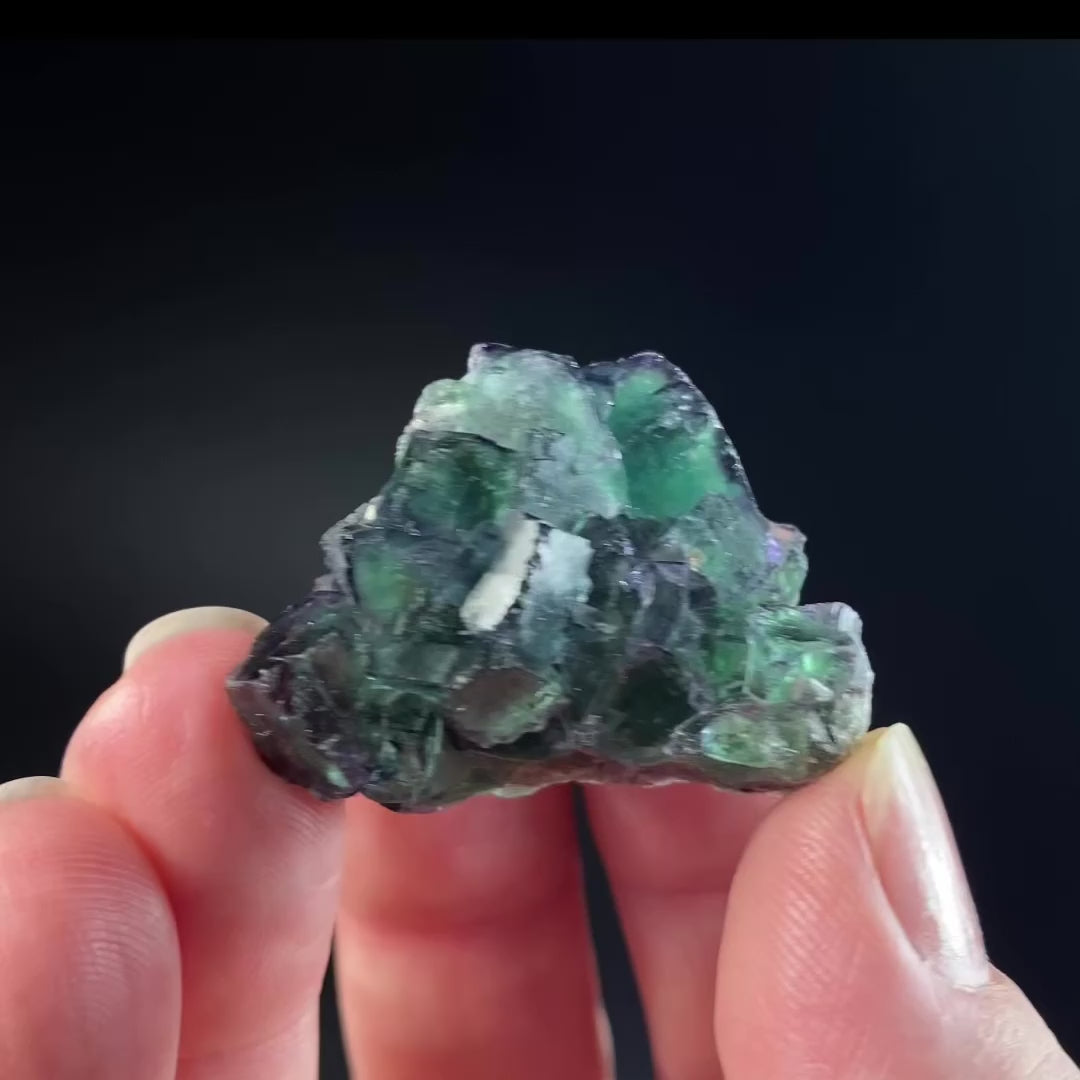 Fluorite clusters in a variety of colorations including blue, green, purple and iridescent from different locales.