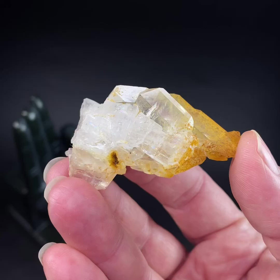 Clear Faden Quartz Crystal Cluster With Natural Golden Yellow Iron Oxide Coated Surface