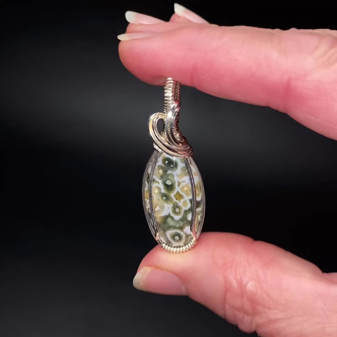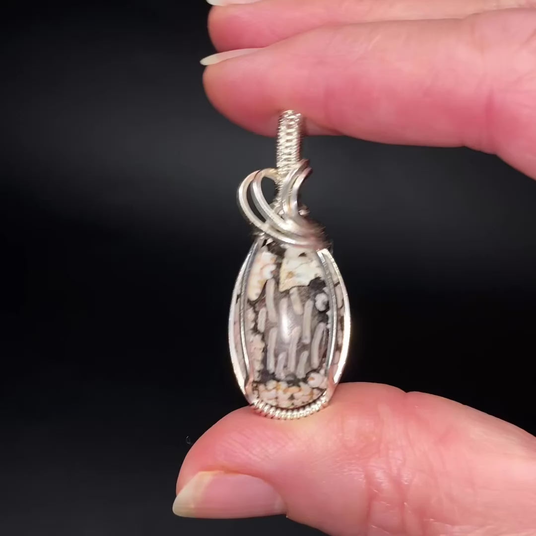 Gobi Desert Agate & Tarnish Resistant Argentium Silver Wire Wrapped Pendant
