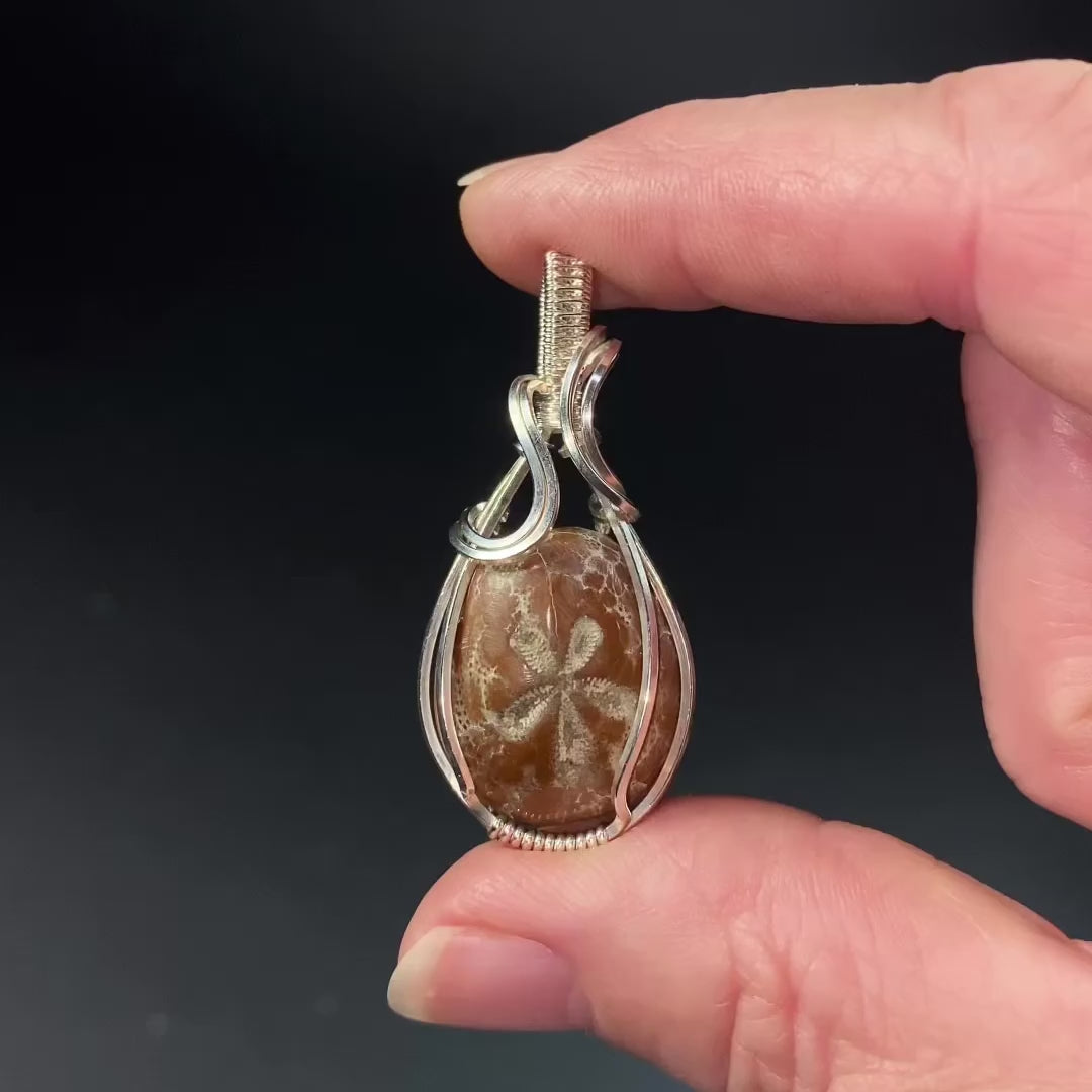 Hemiaster Sea Urchin Fossil and Sterling Silver Wire Wrapped Pendant