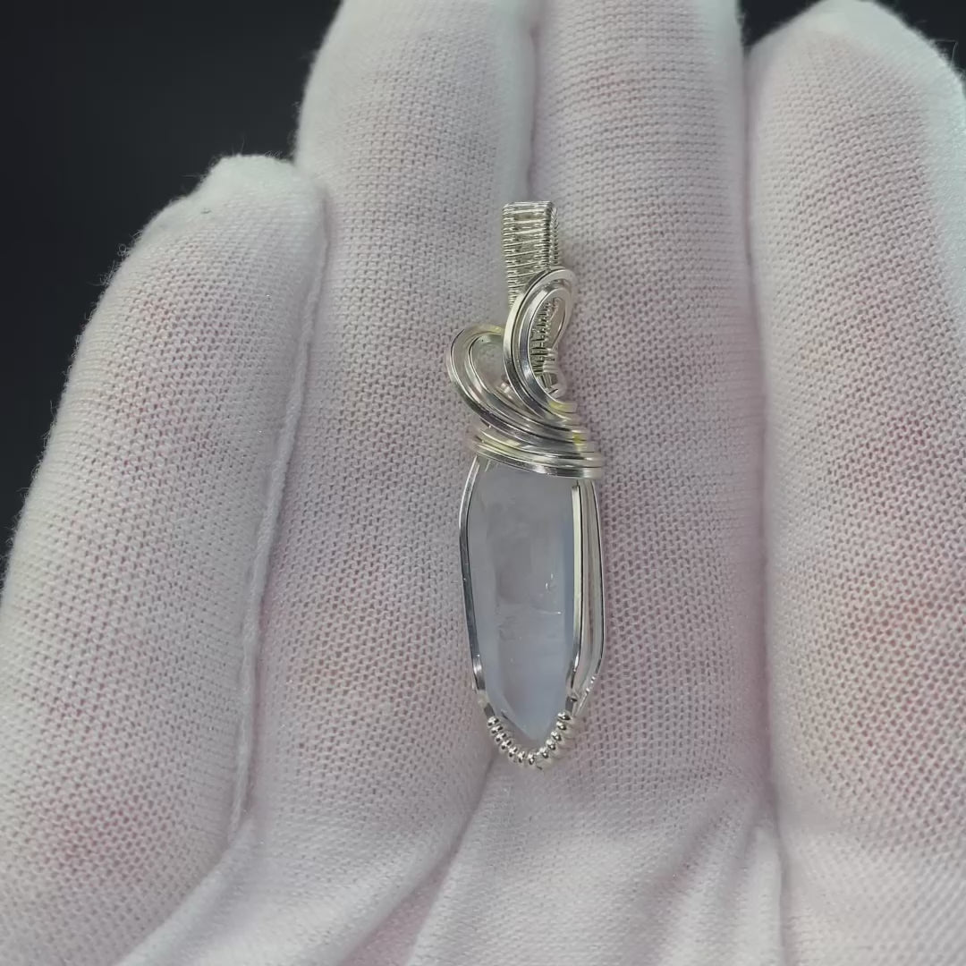 River Tumbled Natural Blue Topaz Crystal & Sterling Silver Wire Wrapped Pendant
