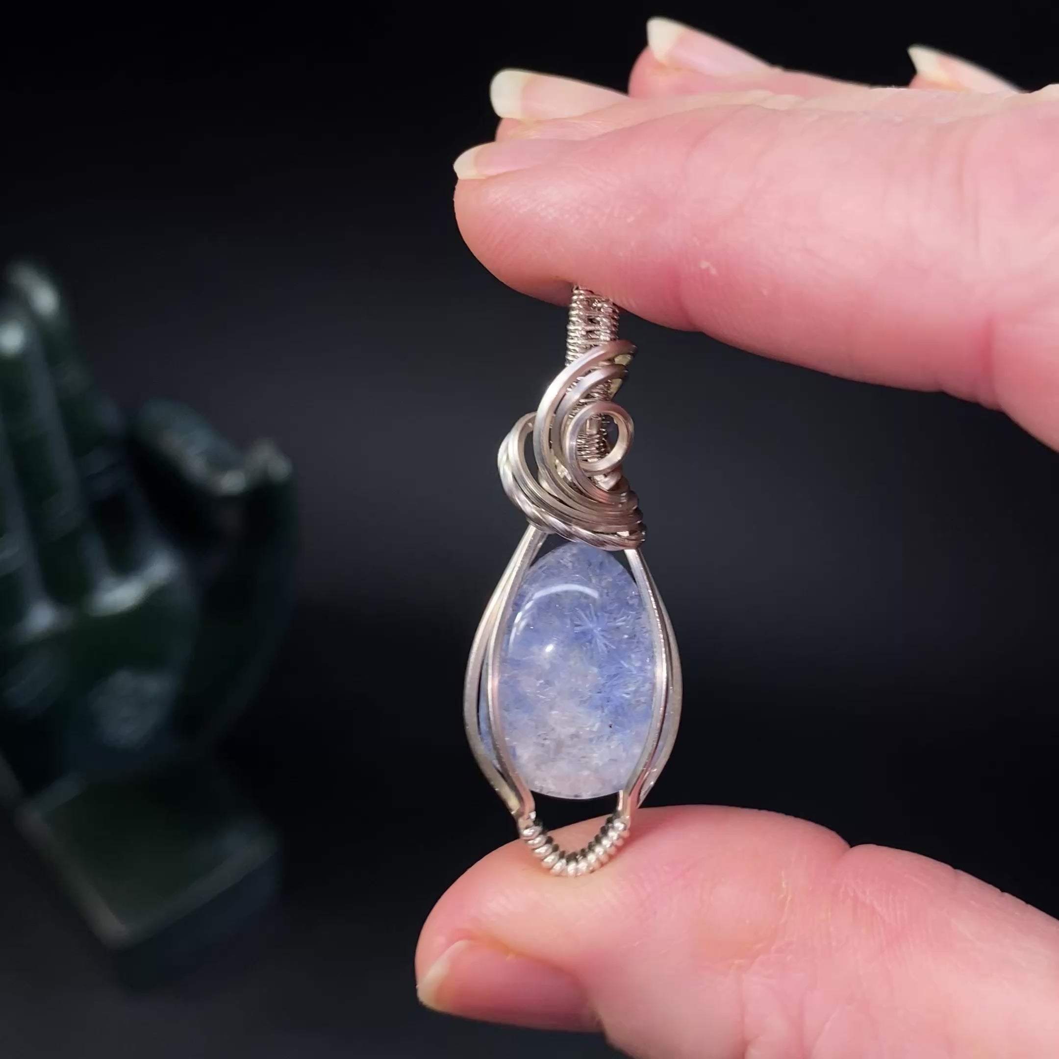 Dumortierite Included Quartz Crystal & Sterling Silver Handmade Wire Wrapped Pendant