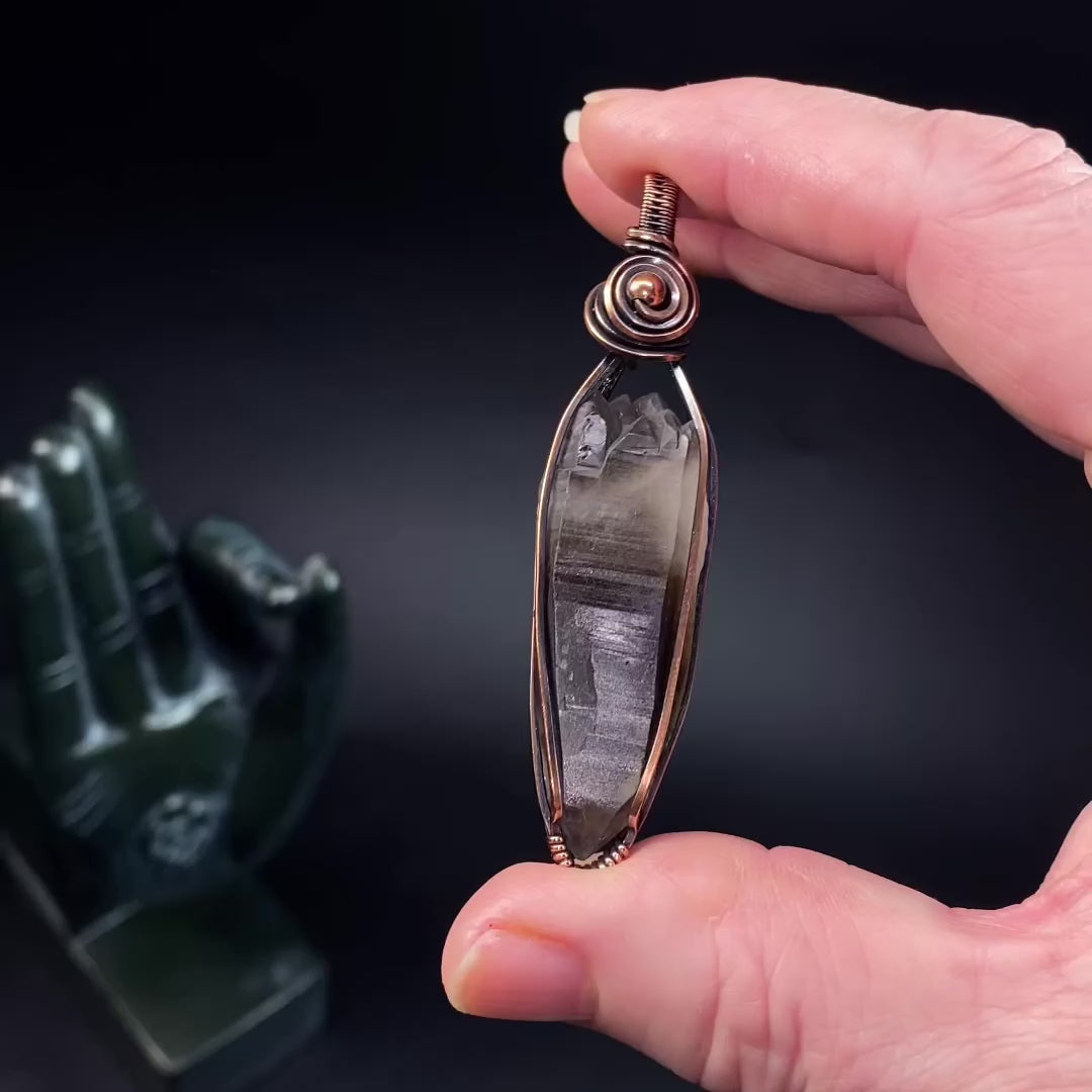Double Terminated Elestial Smoky Quartz & Copper Wire Wrapped Handmade Pendant