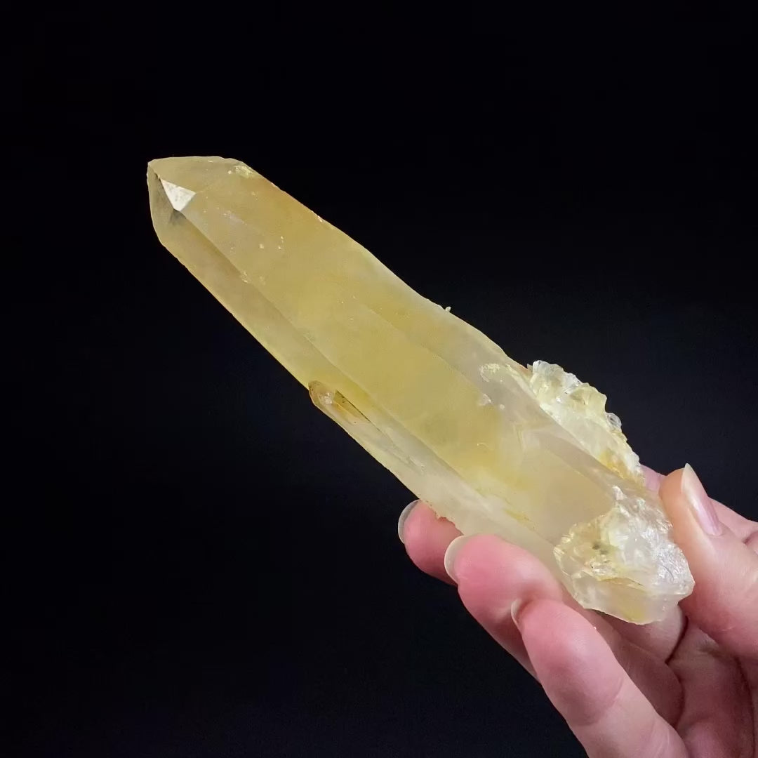 Trigonal Habit Golden Quartz Crystal with Natural Yellow Iron Oxide Surface Coating