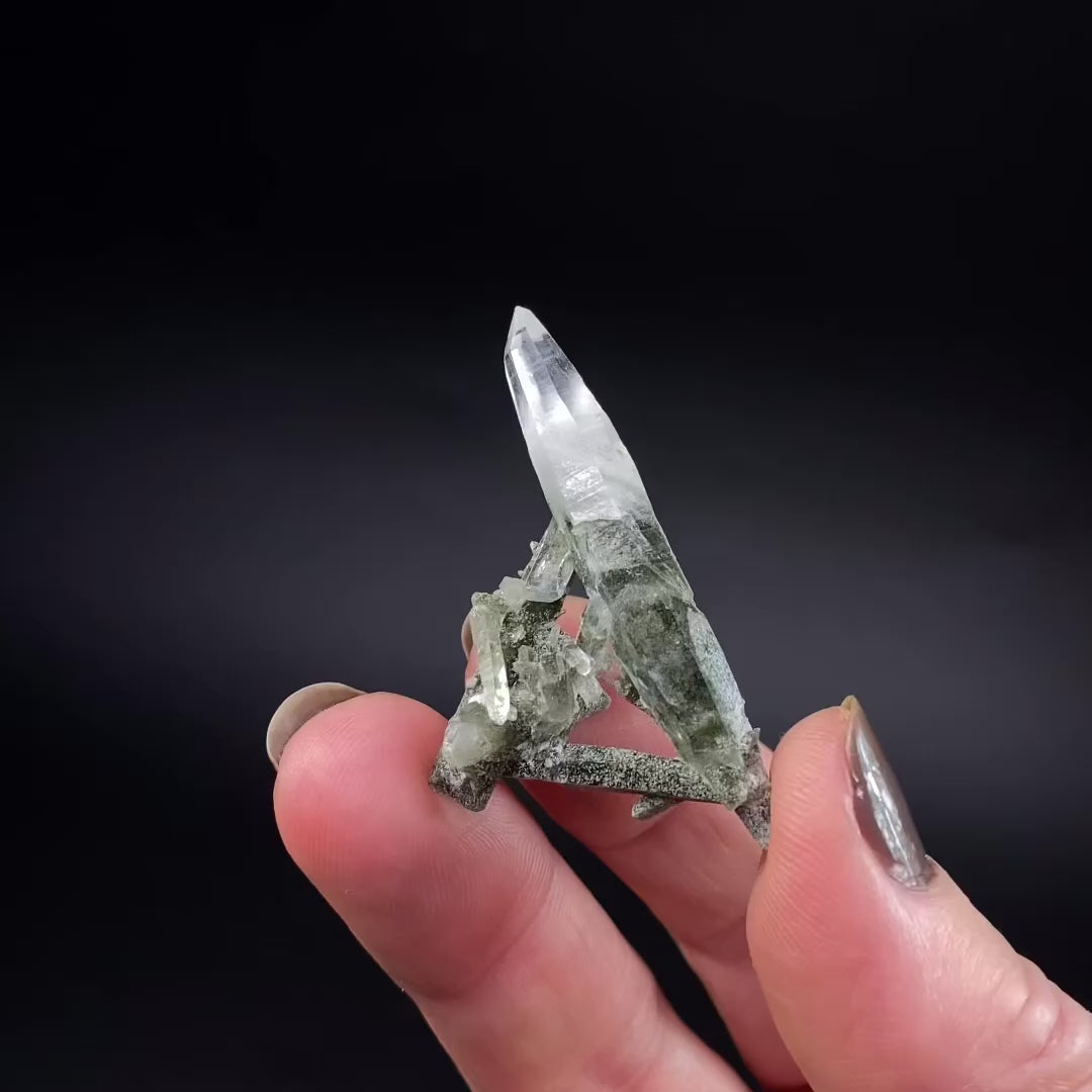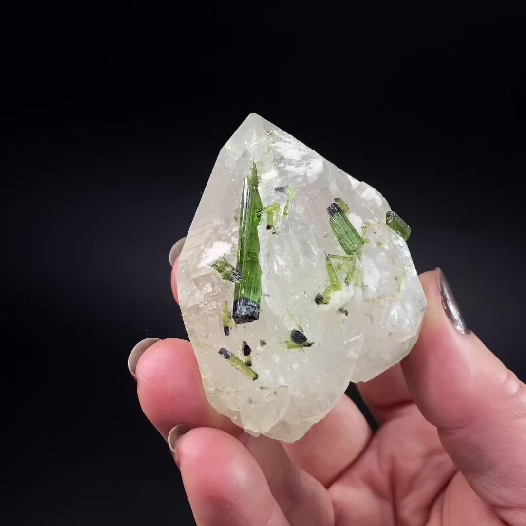 Bicolor Green Tourmaline Crystals on Double Terminated Quartz Crystal, Laghman, Afghanistan