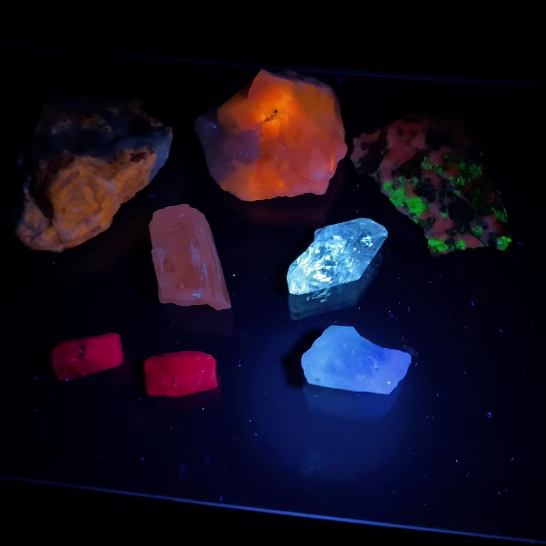 Fluorescent Mineral Sample Lot of 8 Pieces with Fluorescence, Tenebrescence and Phosphorescence!
