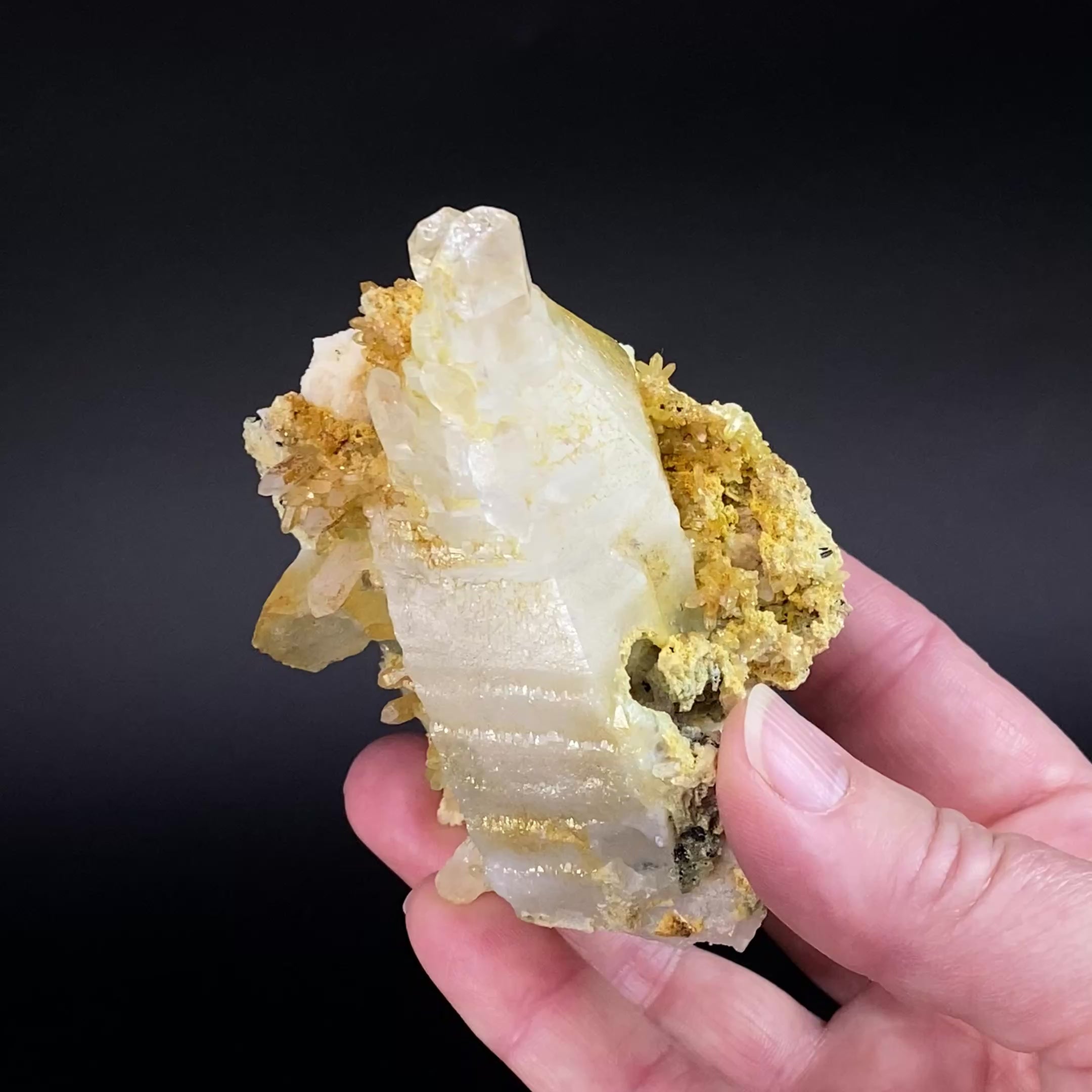 Doubly Terminated Quartz Crystals with "Bird Wing" Remnant of Sediment Matrix with Needle Quartz