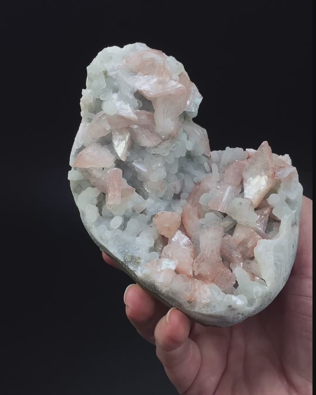 Gemmy Pale Pink Heulandite Fans with Apophyllite & Chalcedony in Trimmed Basalt Matrix