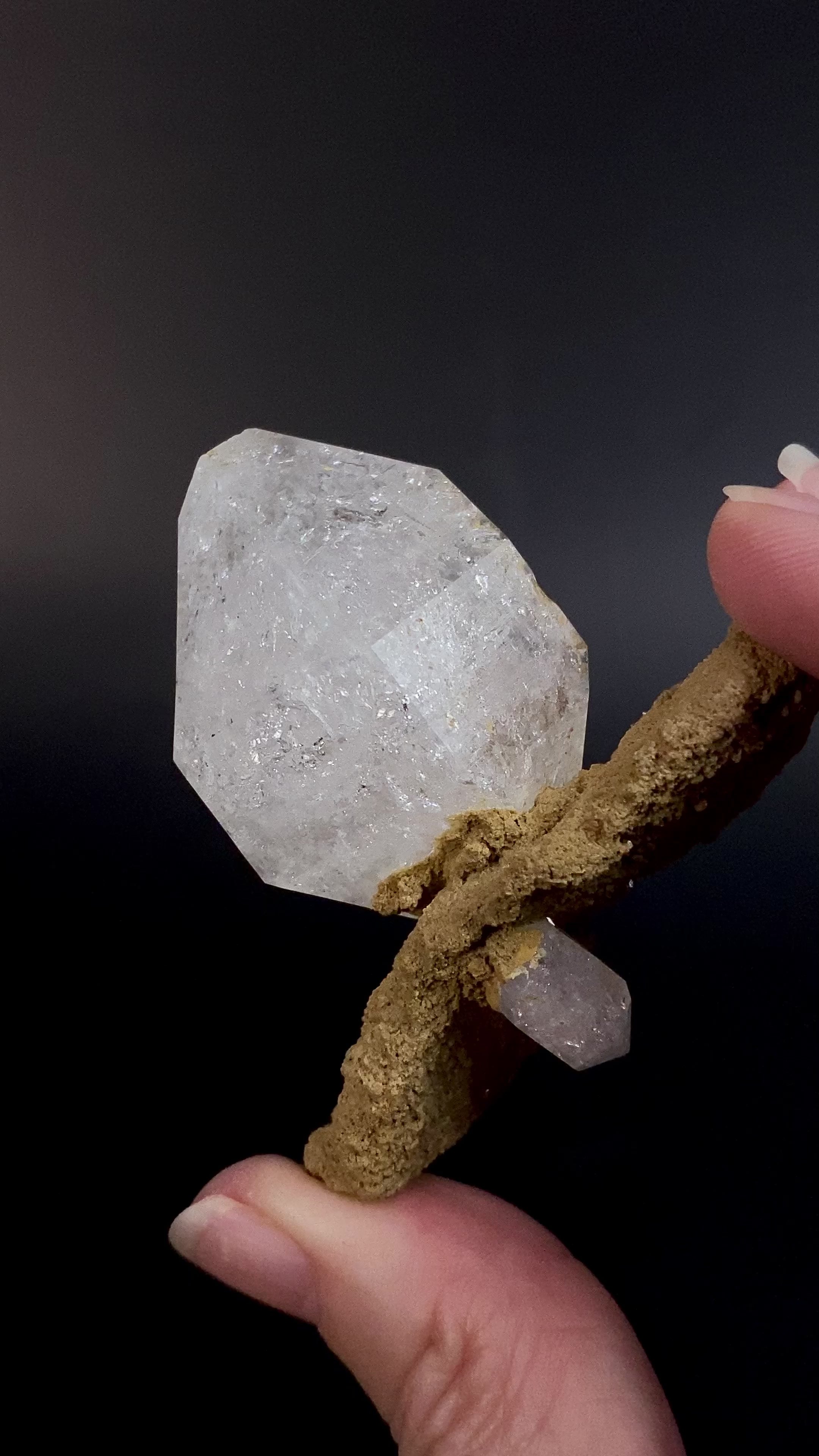 Doubly Terminated Quartz Crystals with "Bird Wing" Remnant of Sediment Matrix with Needle Quartz