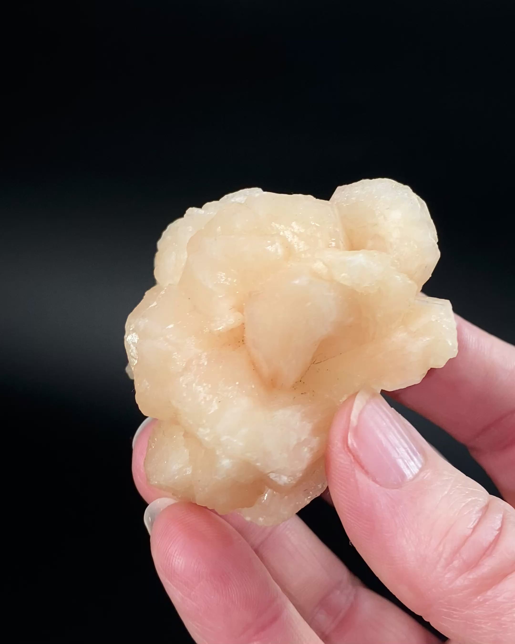 Stilbite is a fascinating mineral belonging to the zeolite group. It typically forms in volcanic rocks and hydrothermal veins, often appearing as delicate, needle-like crystals that cluster together in rosettes. Stilbite can be colorless or white, but it also comes in shades of yellow, pink, or brown. Known for its pearly or silky luster, stilbite is not only admired for its beauty but also valued for its metaphysical properties, such as promoting emotional healing and clarity.