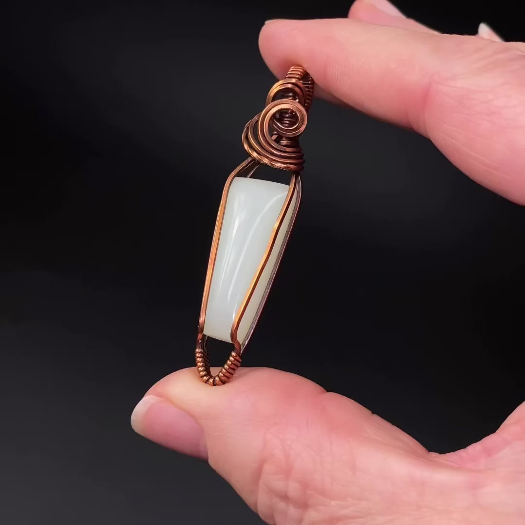 Hyalite Opal with Purple Fluorite Inclusions & Copper Wire Wrapped Pendant