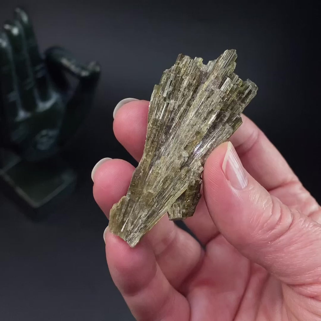 Epidote fan crystal cluster. Location: PakistanSize: 60 x 25 x 20 mm. 35 grams.