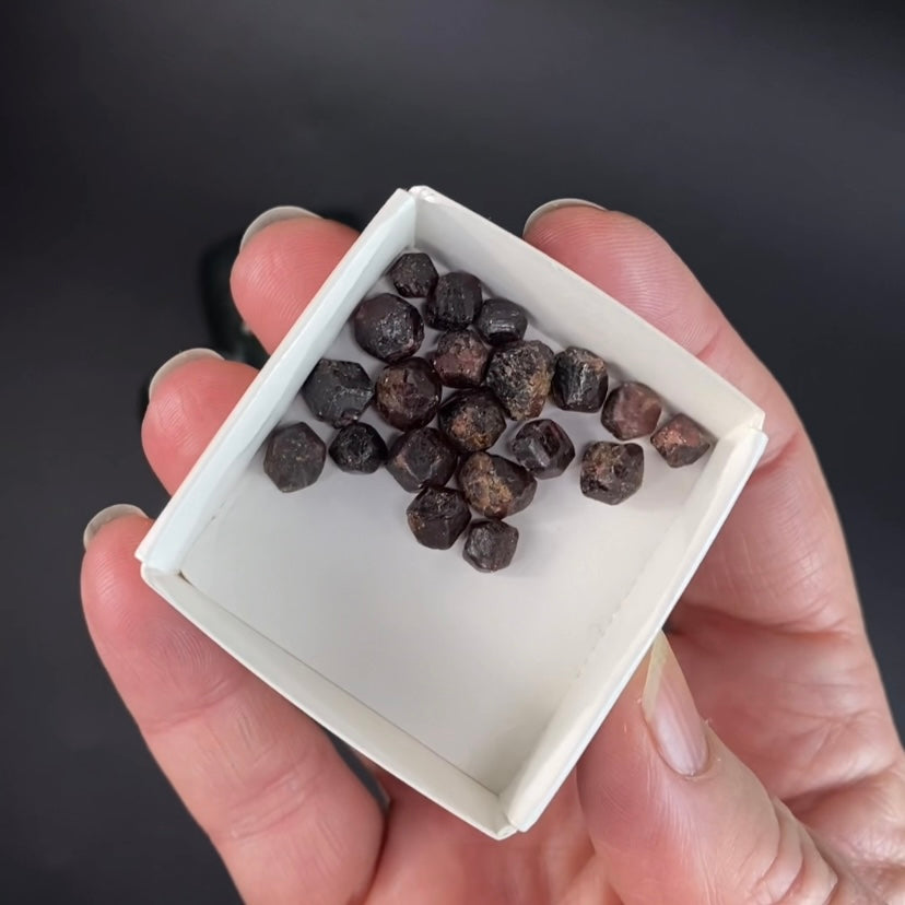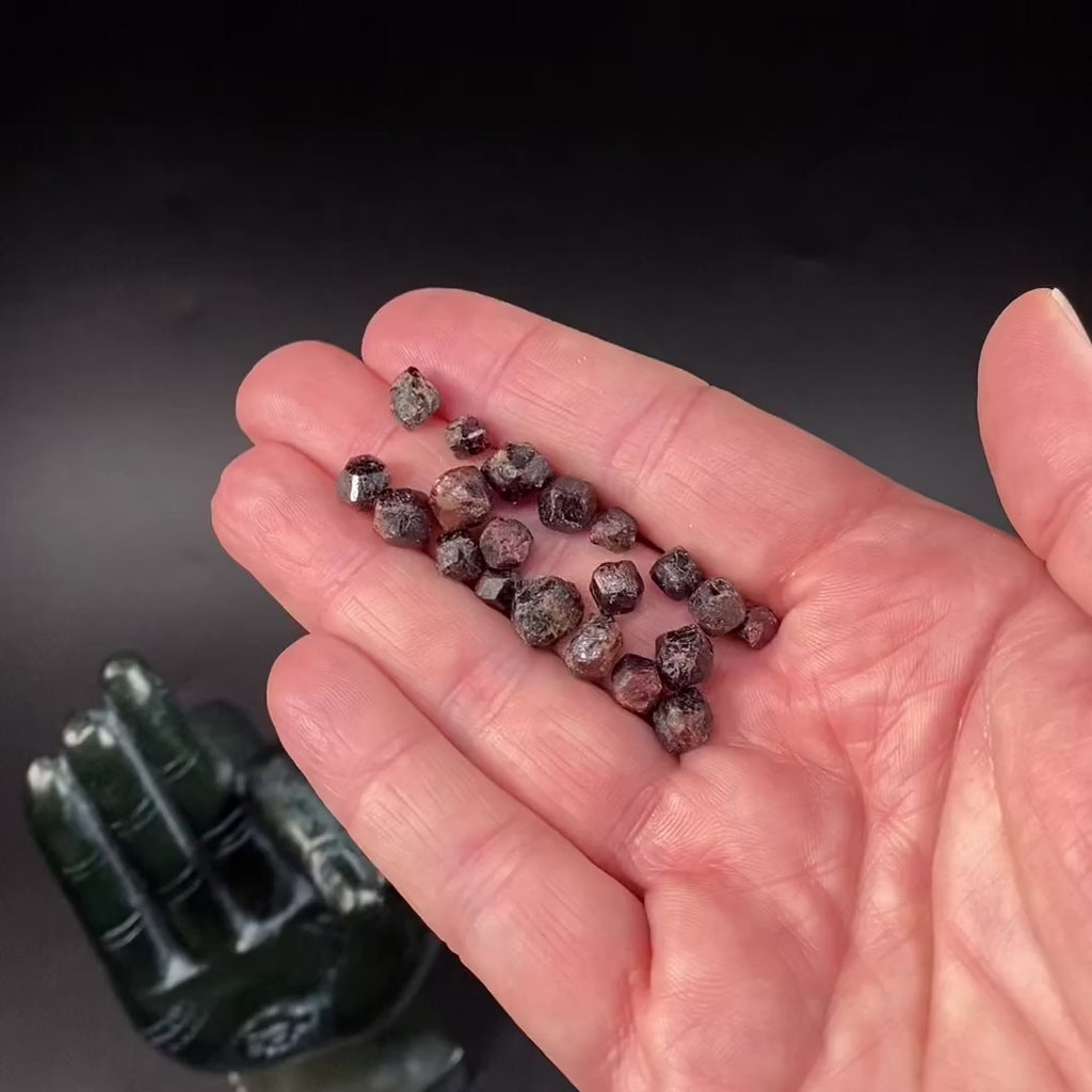 You will receive 10 grams of natural, rough reddish brown almandine garnet crystals in the size of your choosing.