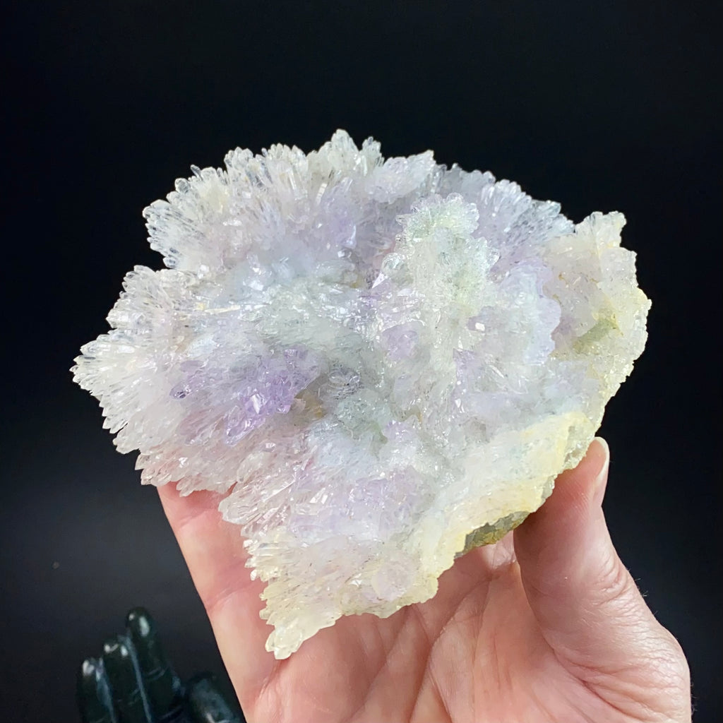 The amethyst crystal flowers are found only in a handful of places on Earth, and the limited locations and difficulty to collect intact make these a rare treat, for both mineral collectors and "philosophers of the unseen." We don't think you'll find finer pieces available on the web.