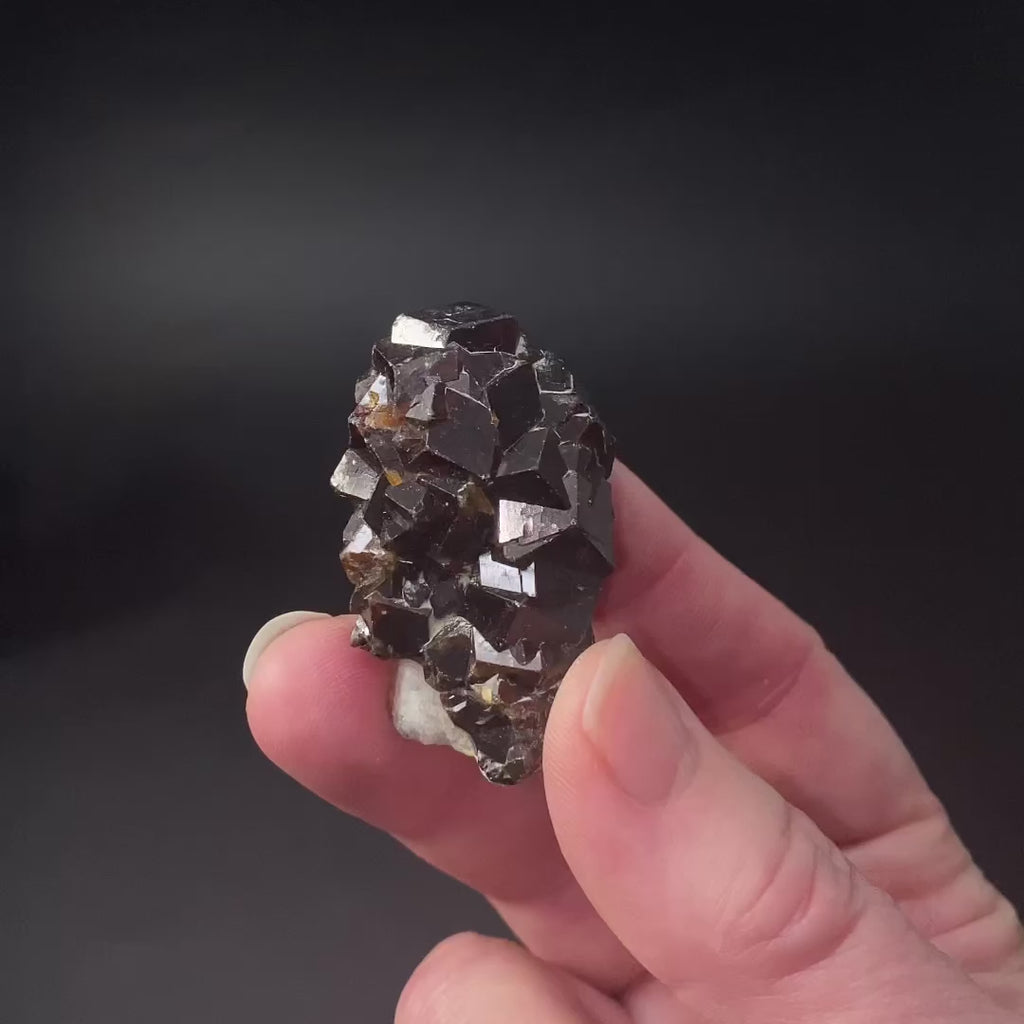 Brown andradite garnet cluster from Pakistan. The core of the cluster has feldspar.