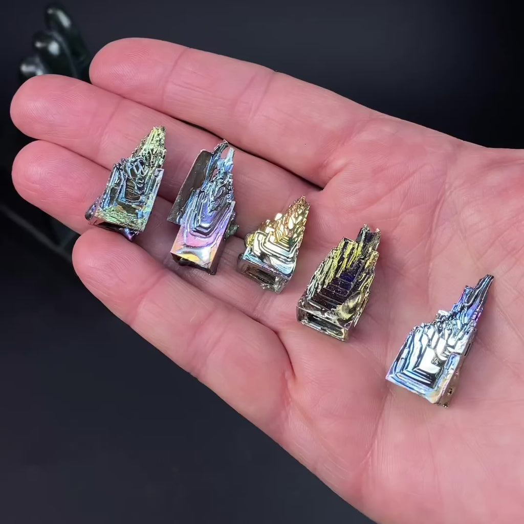 These bismuth clusters are truly one-of-a-kind—each with its own pattern and color flow—making them a vibrant addition to any crystal collection.