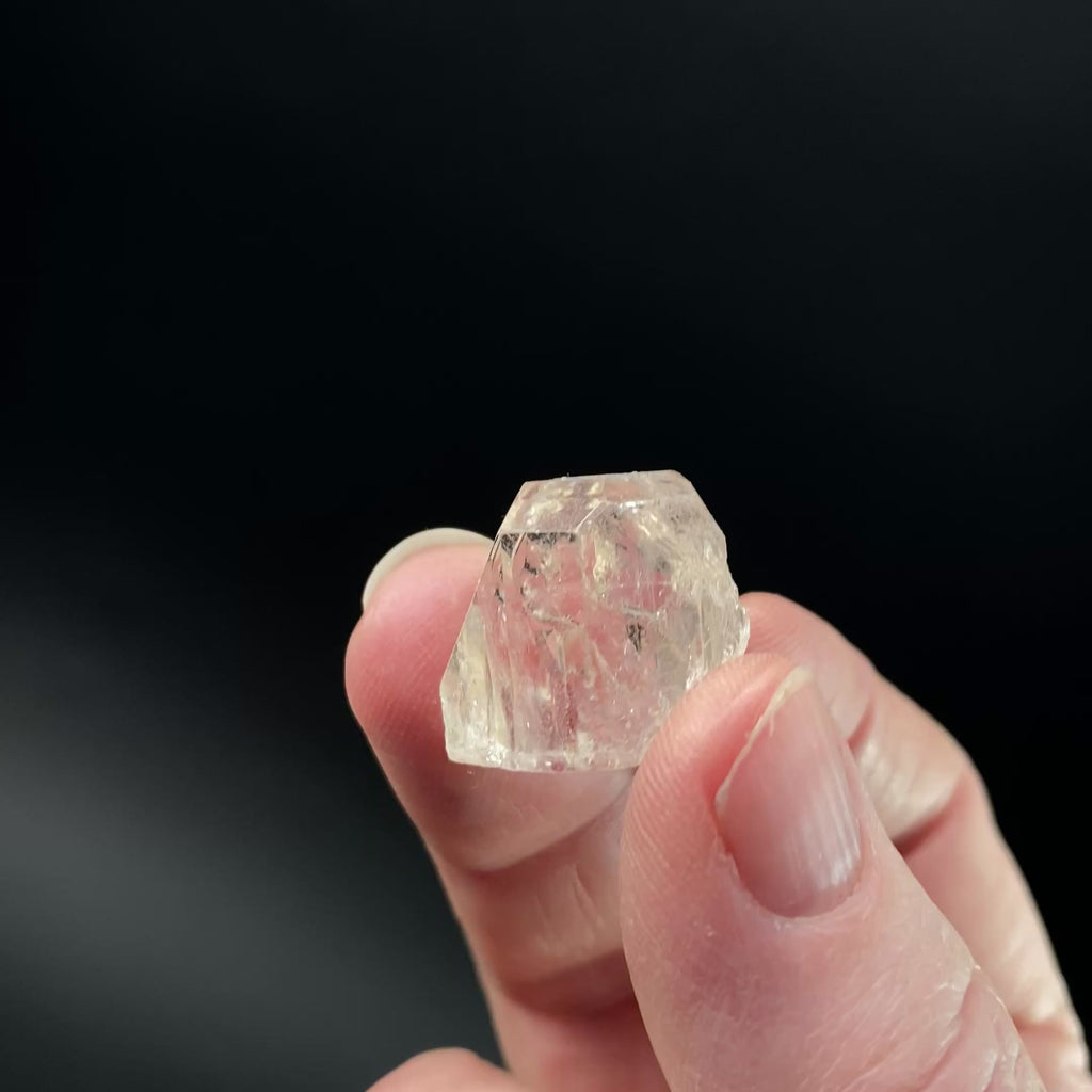 Beautiful champagne color topaz crystal with a partial termination. The reverse side of the crystal has a broken area.