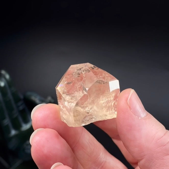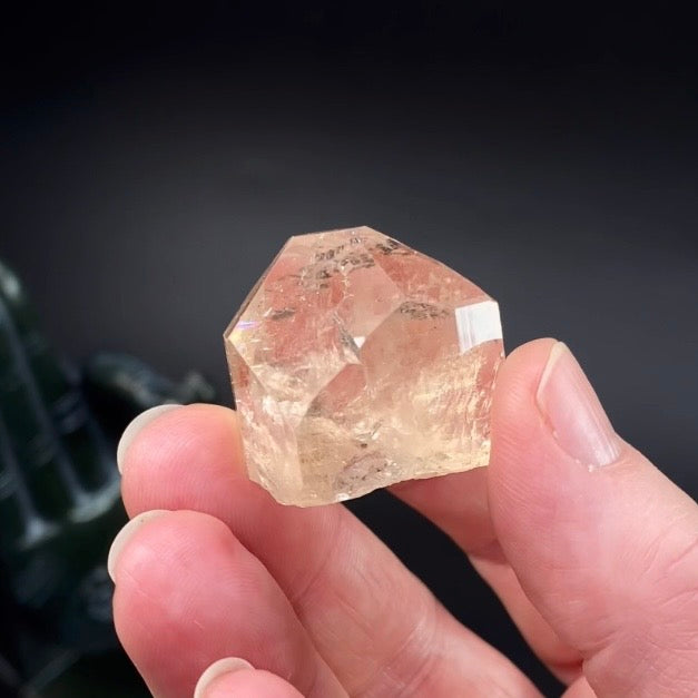 Beautiful champagne color topaz crystal with a complete termination. The reverse side of the crystal has a broken area.