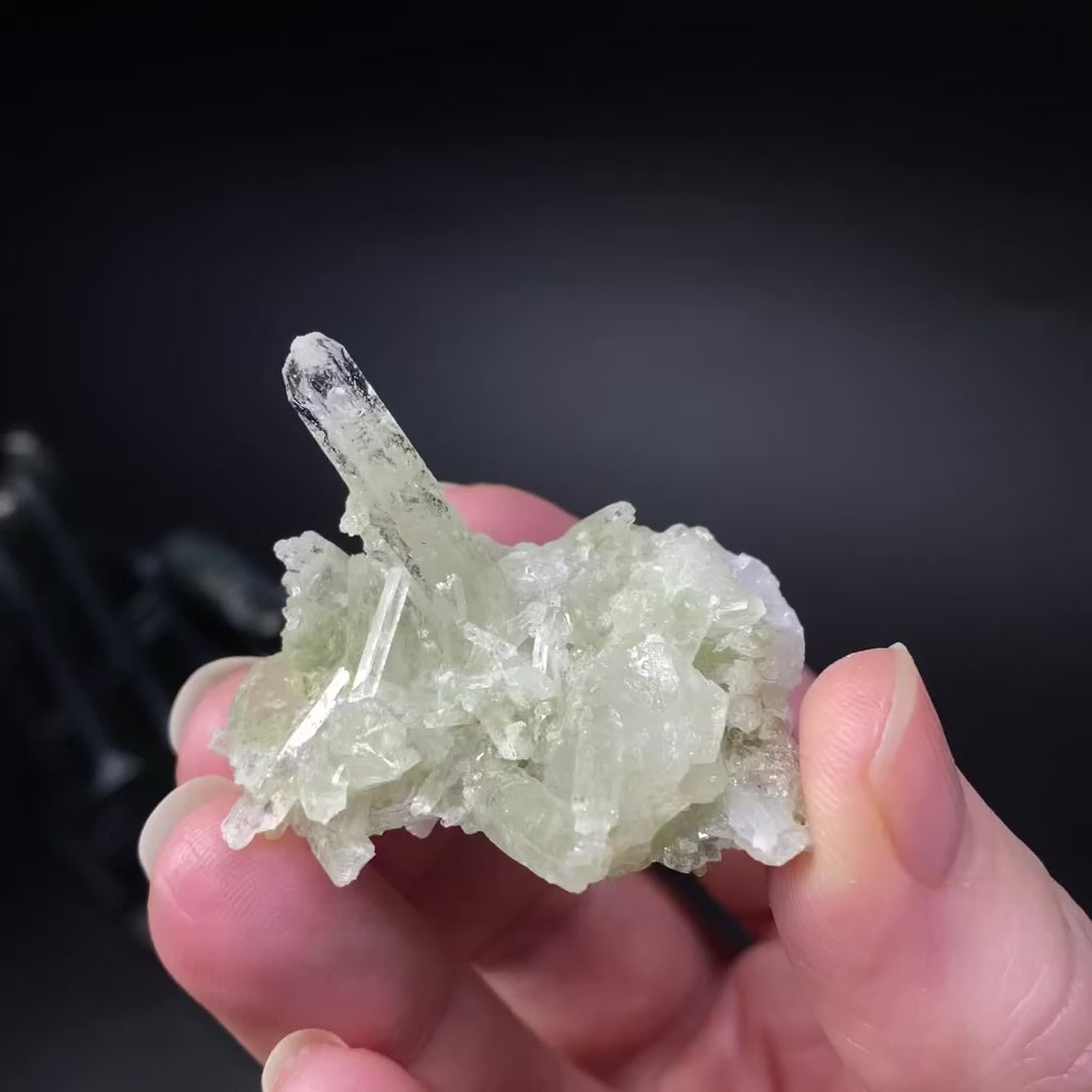 This chlorite included quartz cluster has areas with very light chlorite as well as clear crystals.