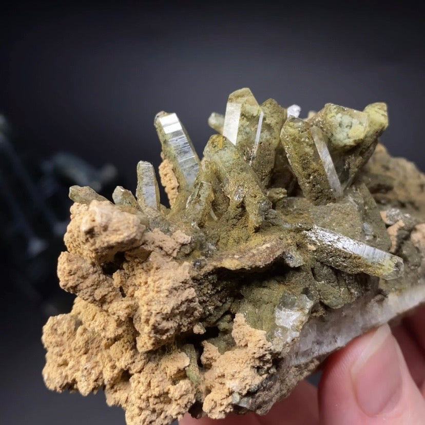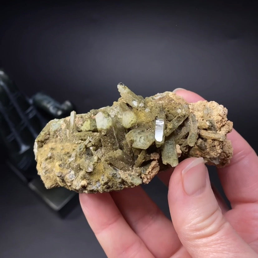 Beautiful dark mossy green quartz cluster with chlorite inclusions.