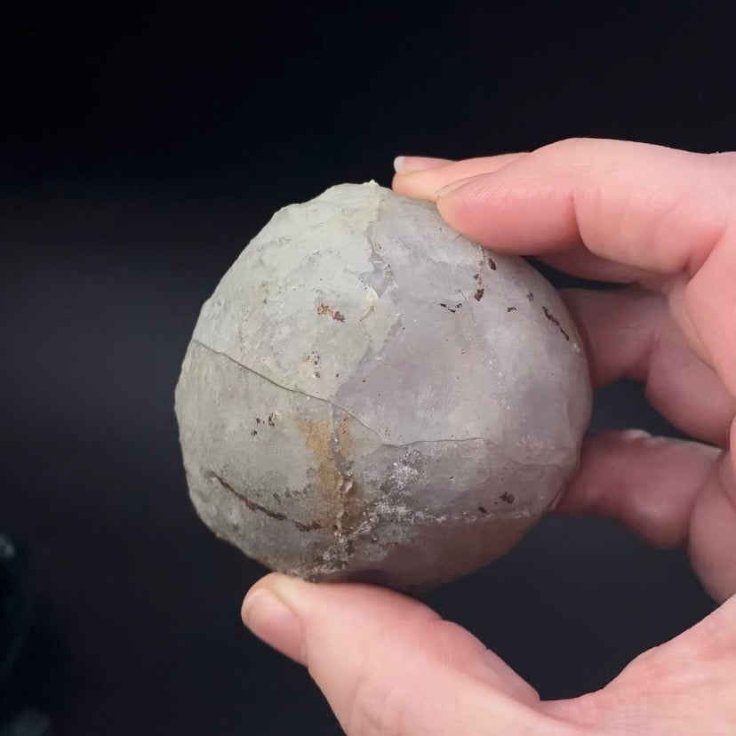 Don’t let the outside of this one fool you, inside are medium purple amethyst crystals.