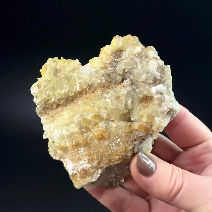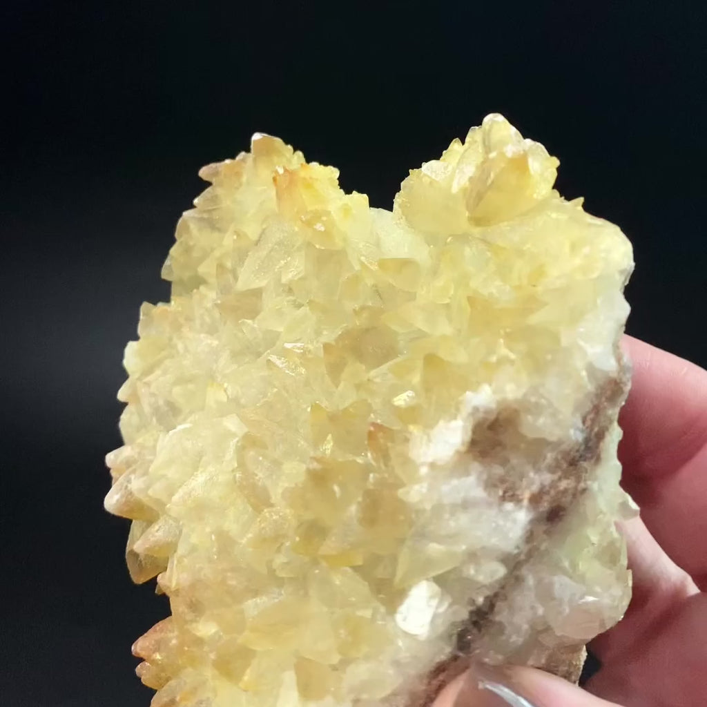 Dogtooth calcite cluster with an orange iron oxide surface coating with some areas of iridescence.Balochistan, PakistanSize 96 x 86 x 41 mm. 230 grams.