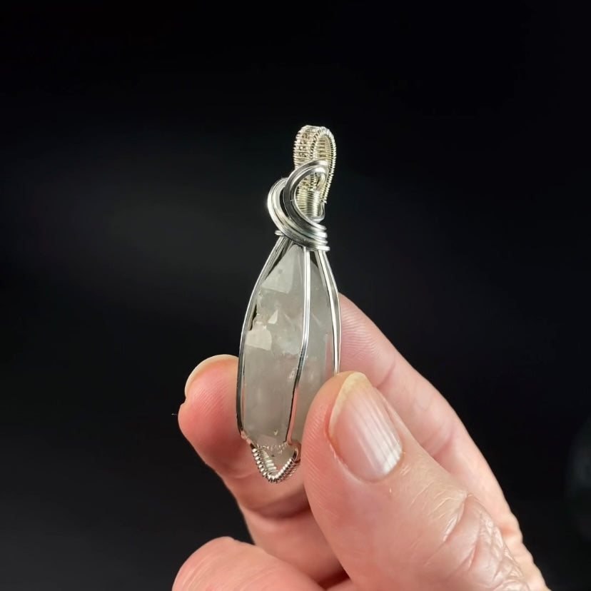 Beautiful doubly terminated elestial smoky quartz crystal wrapped in sterling silver wire. The stone has multiple terminations and is a light smoky color.
