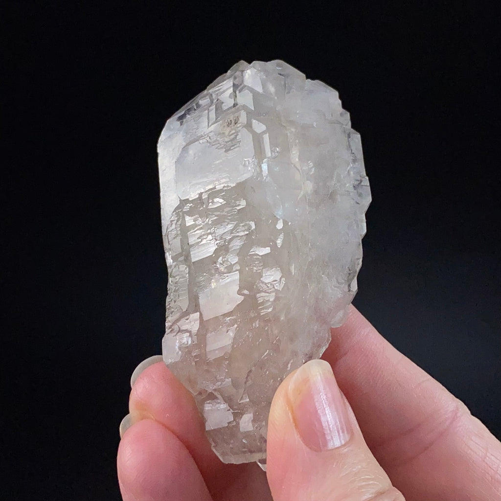 Amazing double terminated light smoky elestial quartz crystal with multiple terminations on both sides. This one is fascinating and even more so in person.