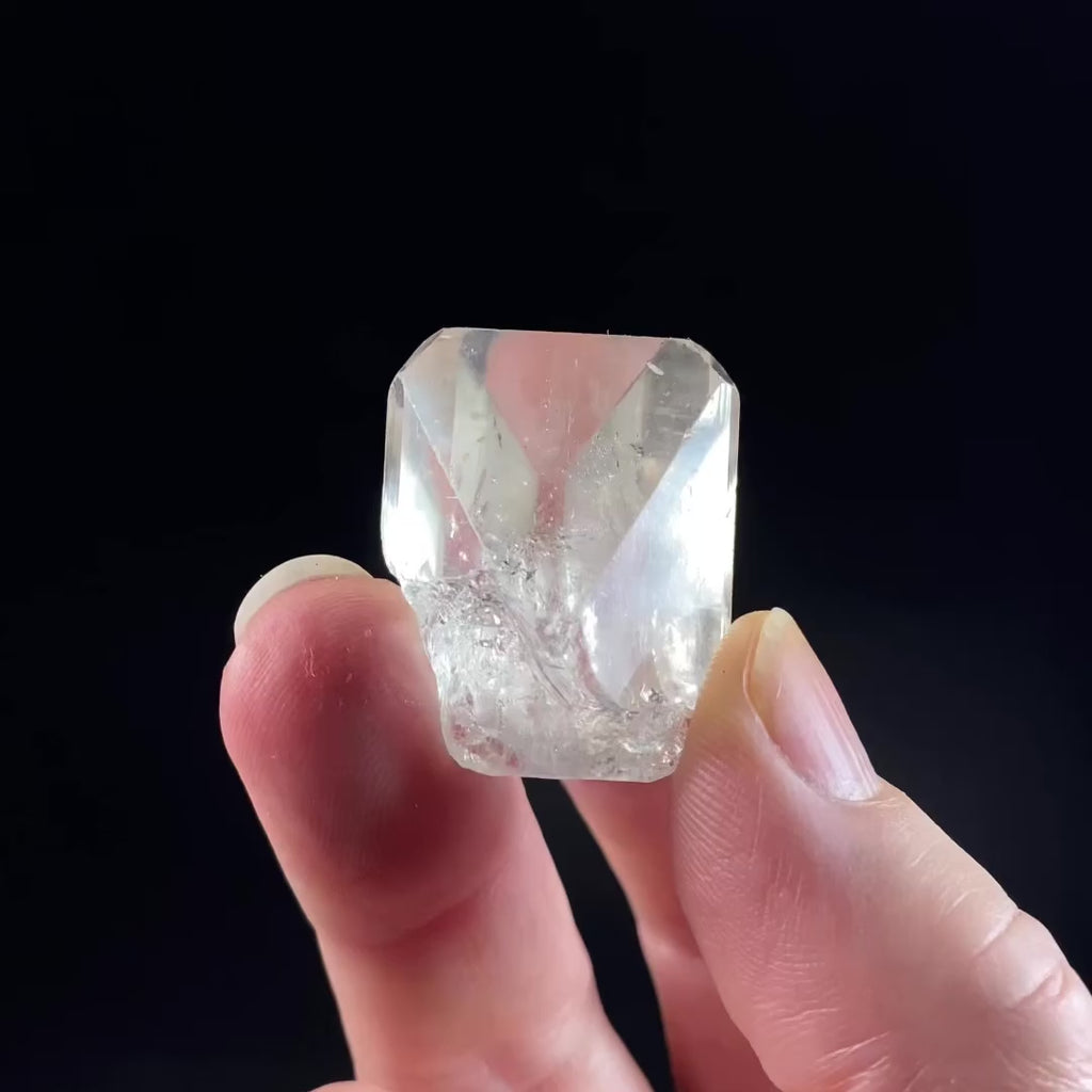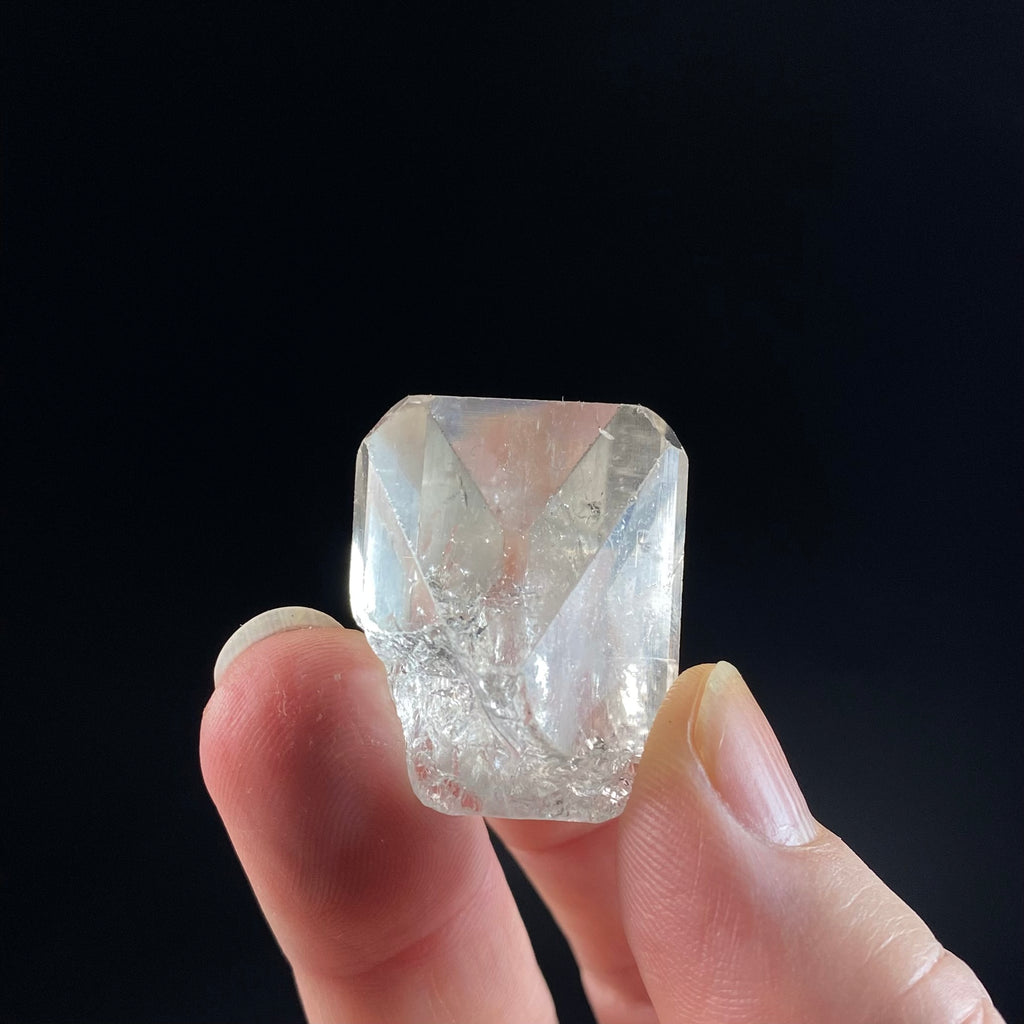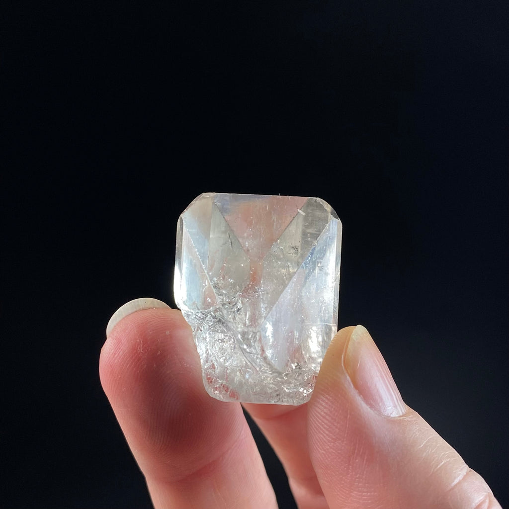 Beautiful clear topaz crystal with a chisel shaped termination. With 254nm short wave filtered ultraviolet light, the crystal fluoresces yellow.
