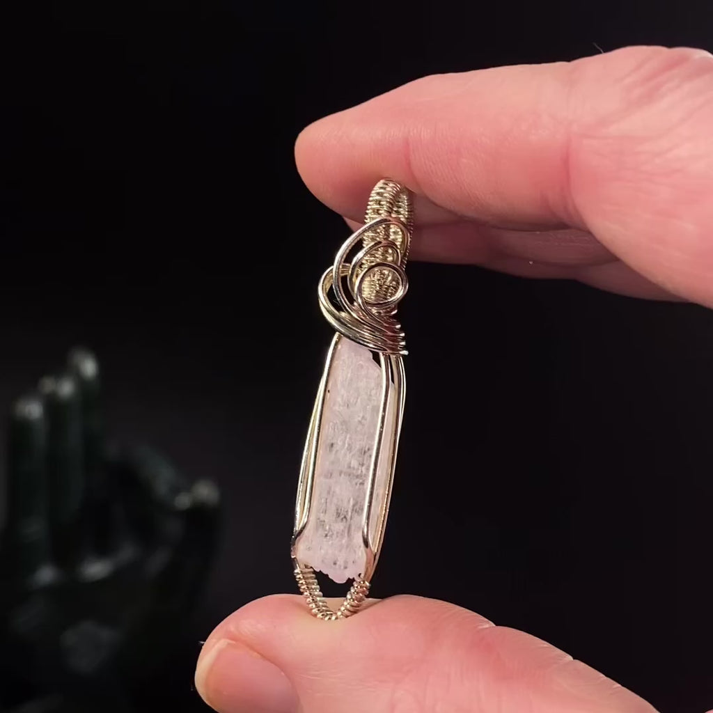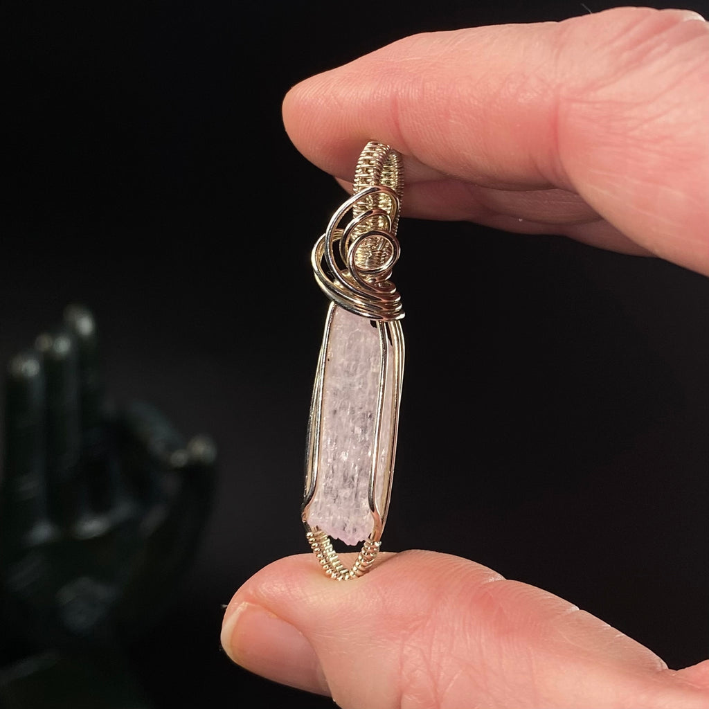 Beautiful pink spodumene var. kunzite crystal wrapped in sterling silver wire.