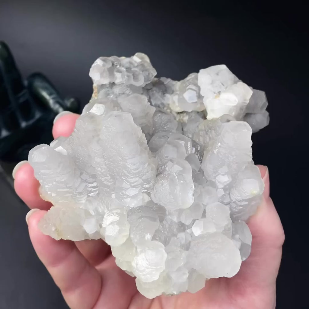 This is a beautiful, natural crystal cluster with high-Mn calcite with nail head crystals in a stacked formation, with sphalerite core. From the famous Trepça Mine complex in the Trepça Valley in Kosovo.