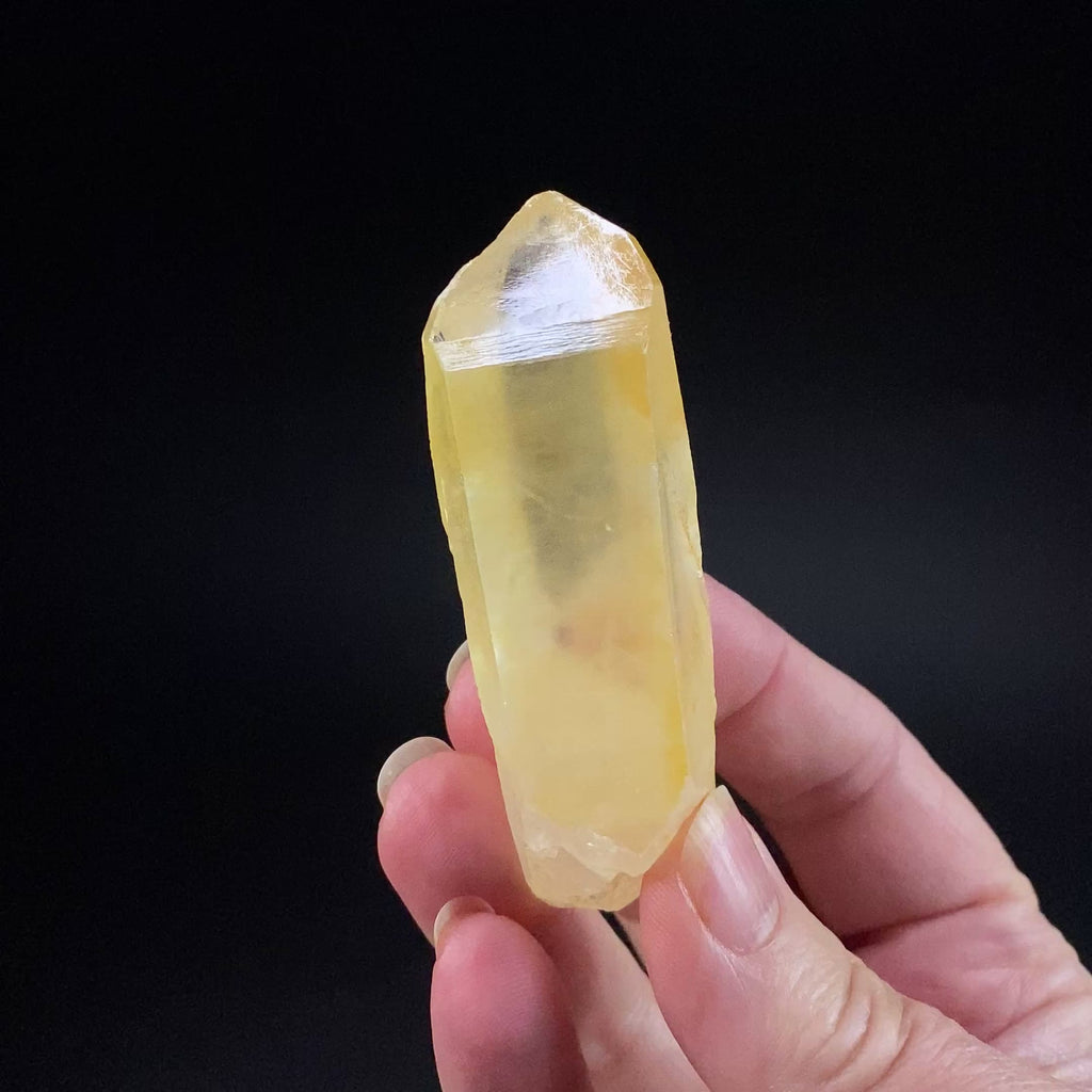 Beautiful golden quartz crystal with a natural yellow iron oxide coating.