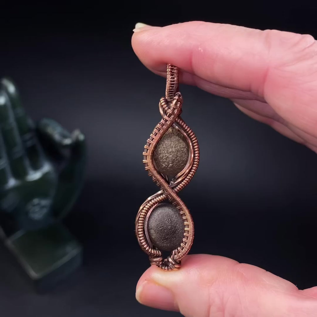 Elevate your grounding energy with this handcrafted copper pendant featuring a rare pair of genuine Kansas Pop Rocks (Boji Stones). Each stone is individually selected and set in an intricate, double-helix inspired wire wrap that highlights their natural texture and earthy presence. The warm tone of antiqued copper beautifully complements the stones’ organic, matte finish, creating a piece that feels both ancient and elemental.
