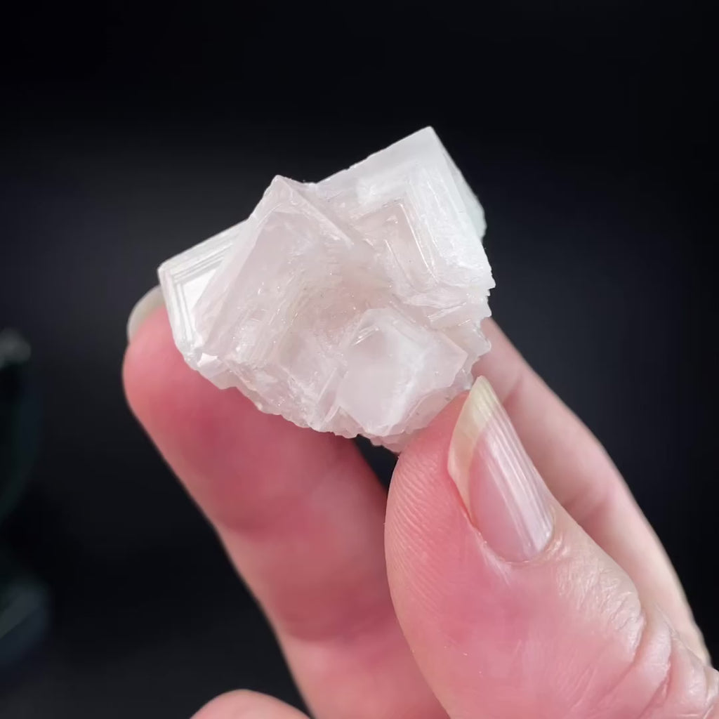 Light pink cubic halite crystal with beautiful growth patterns.