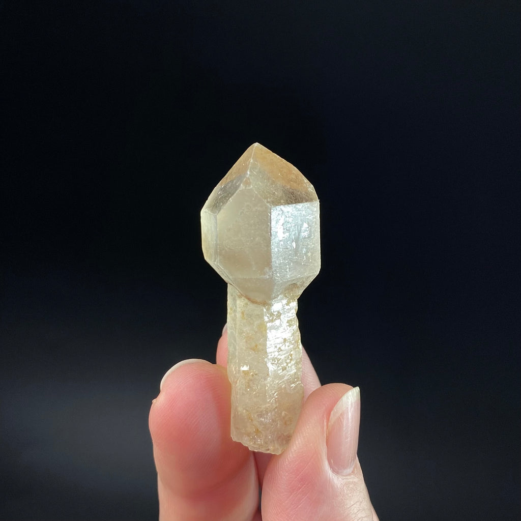 Light smoky scepter crystal with a trigonal growth habit.