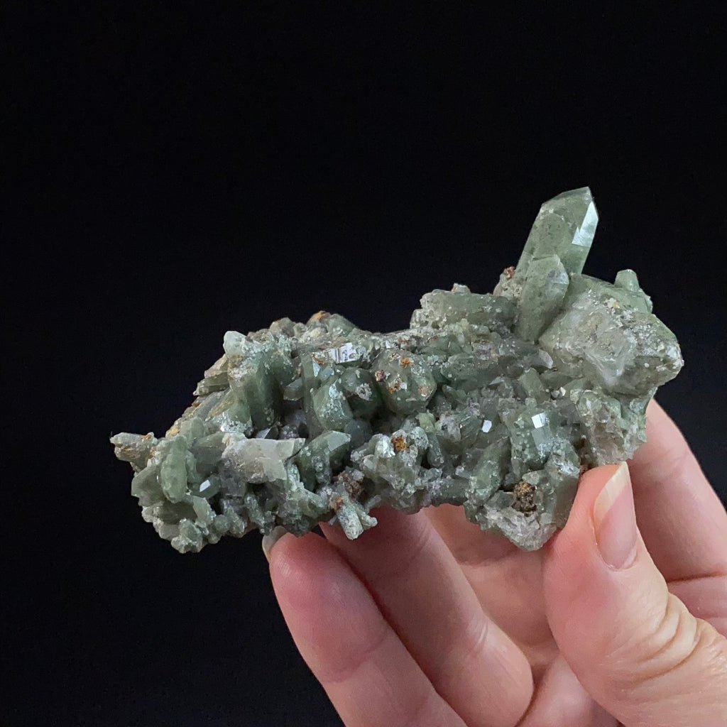 Beautiful and lustrous chlorite included quartz crystal cluster. Location: Skardu, PakistanSize: 92 x 50 x 27 mm. 72 grams.