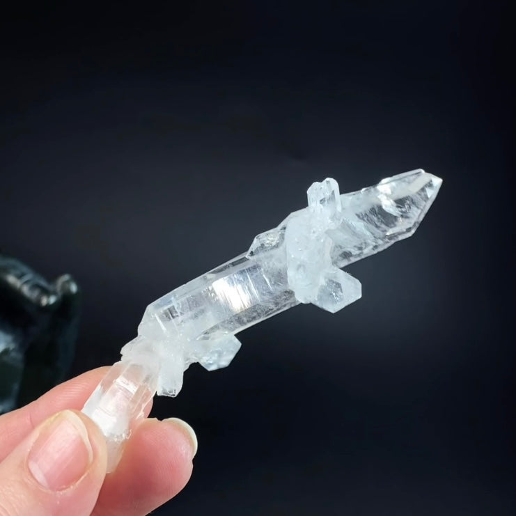 Clear faden quartz crystal with natural bend.