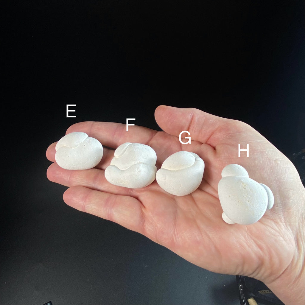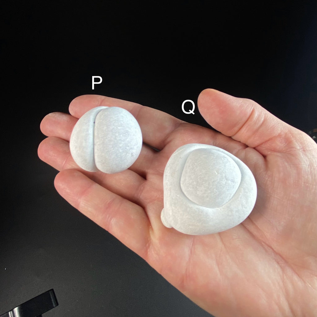 These are composed of calcium carbonate and clay, with opal or chert at the center. There may be a transfer of some calcium carbonate to hands.