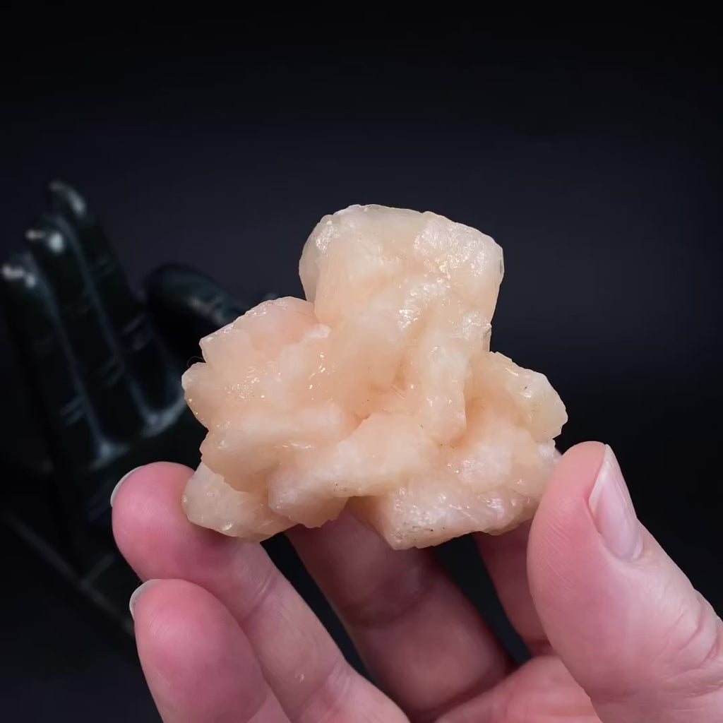 Pretty peach color stilbite “petal” cluster.Size: 55 x 52 x 30 mm. 64 grams.