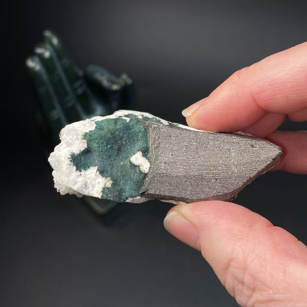 That color mix — cyan fluorescence with greener afterglow - is consistent with Mn-activated calcite with minor secondary activators and