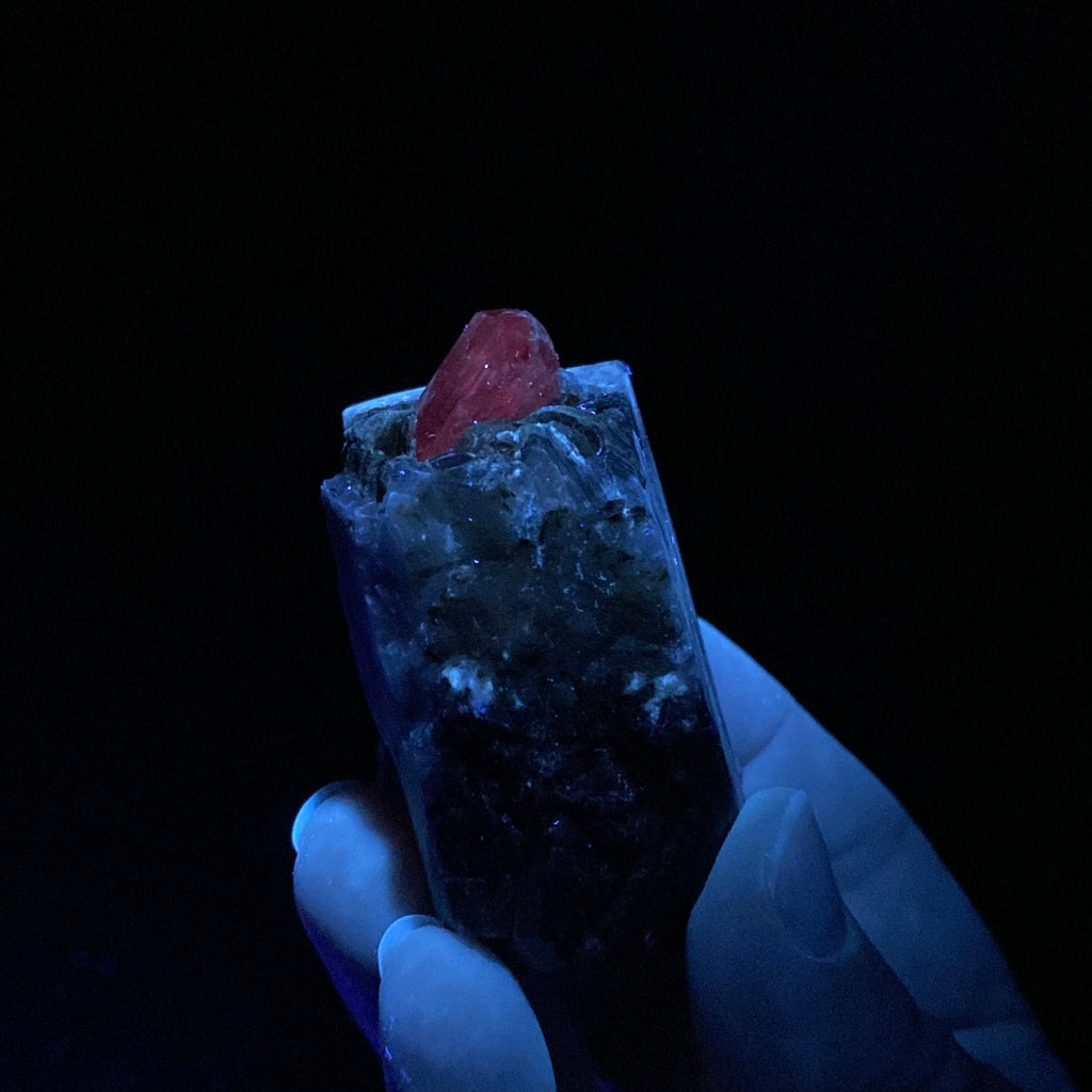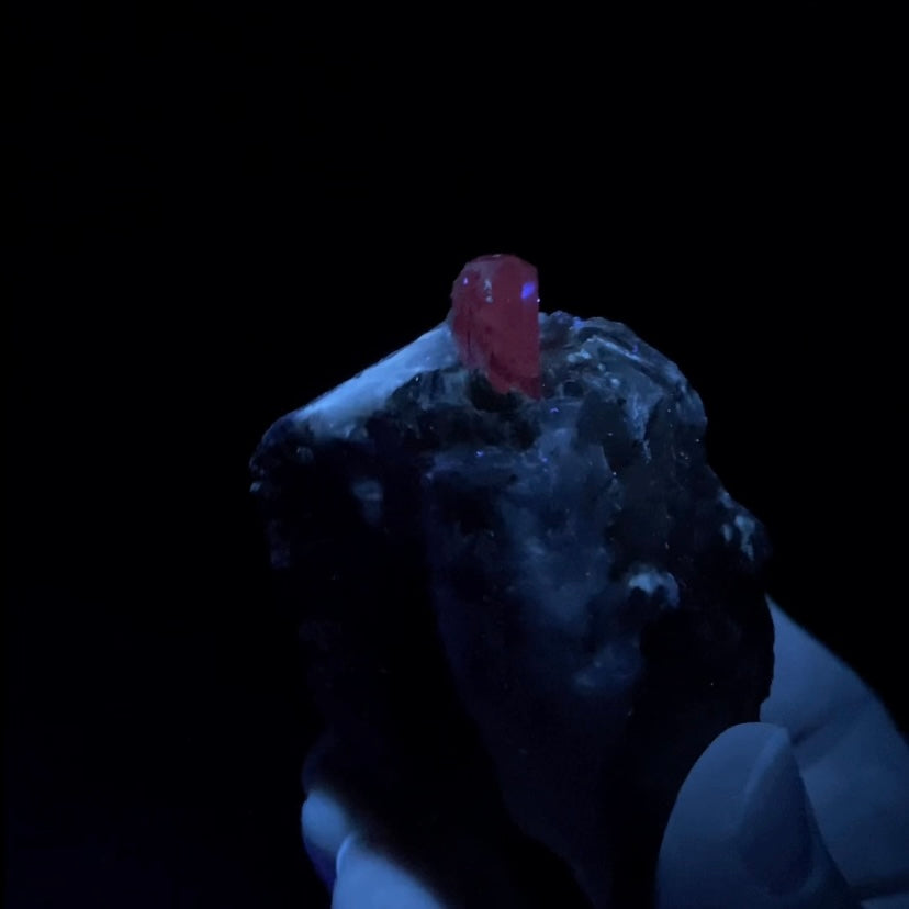 With 365nm long wave ultraviolet light the topaz fluoresces reddish pink color.