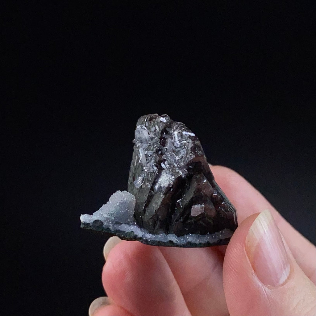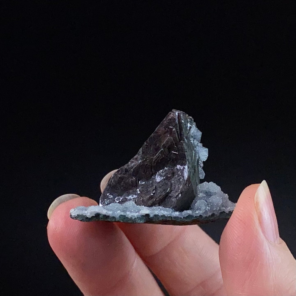 This cluster features a single, red-brown heulandite fan with some clear stilbite blades on a layer of chalcedony that is on a thin layer of basalt matrix.