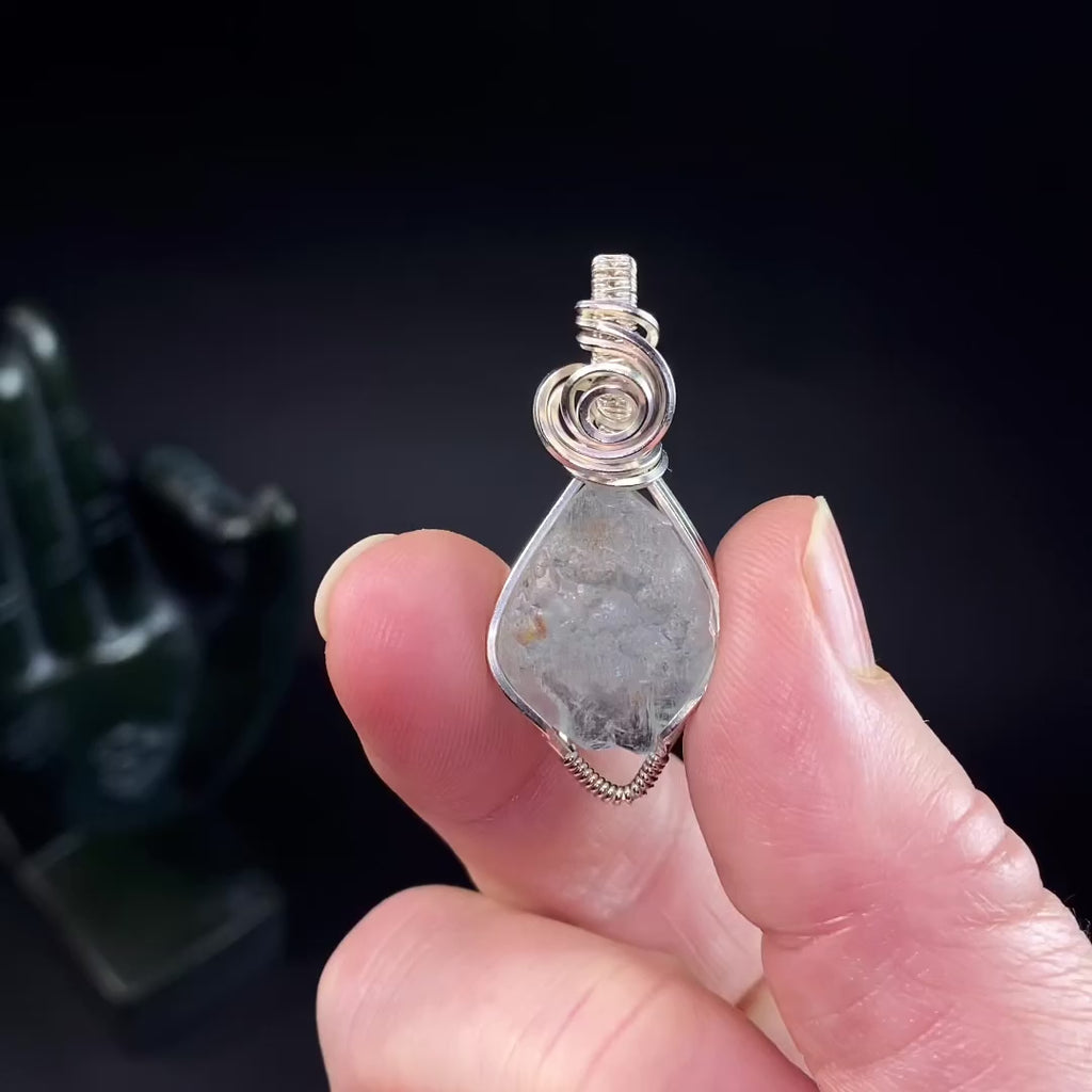 Raw, River tumbled blue topaz stone wrapped in sterling silver wire. This stone is from the Jequitinonha River, Minas Gerais, Brazil.