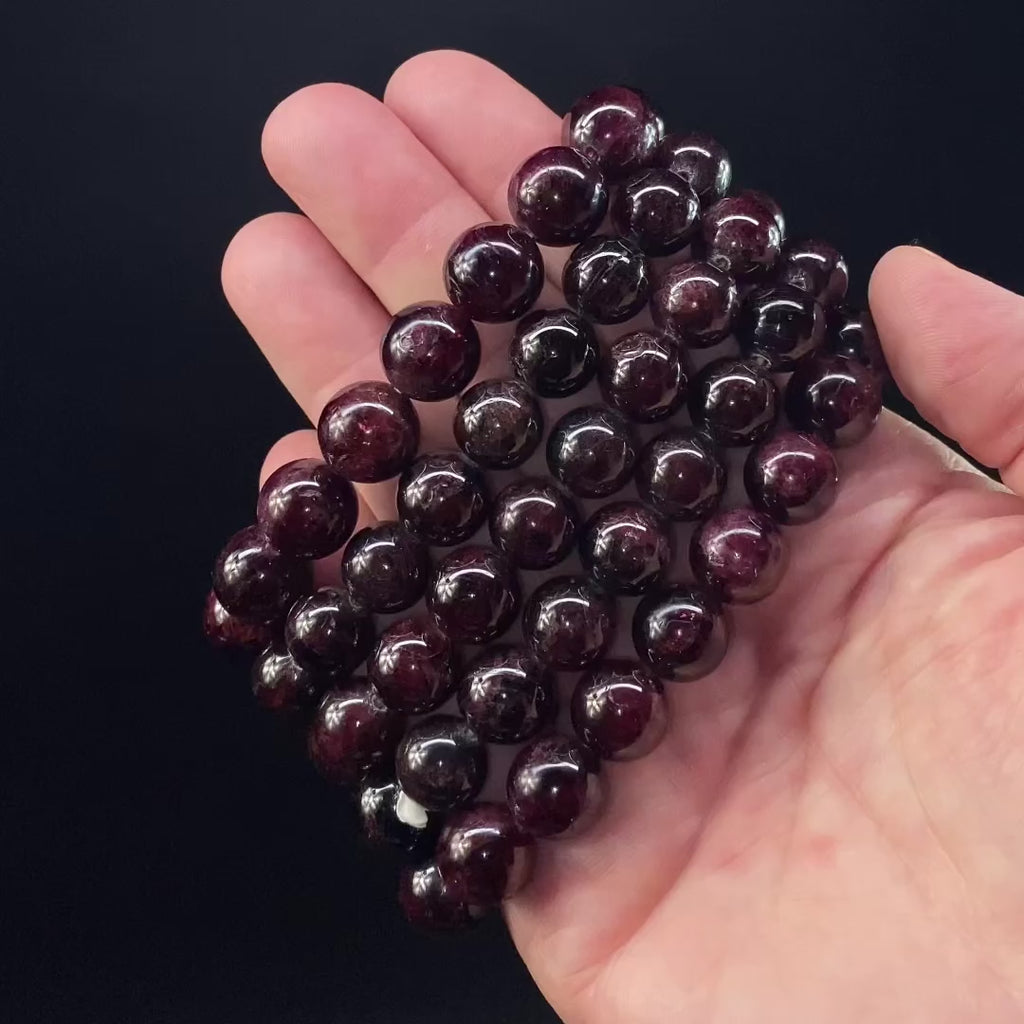 Beautiful wine red, 10mm (average) garnet bead bracelet.