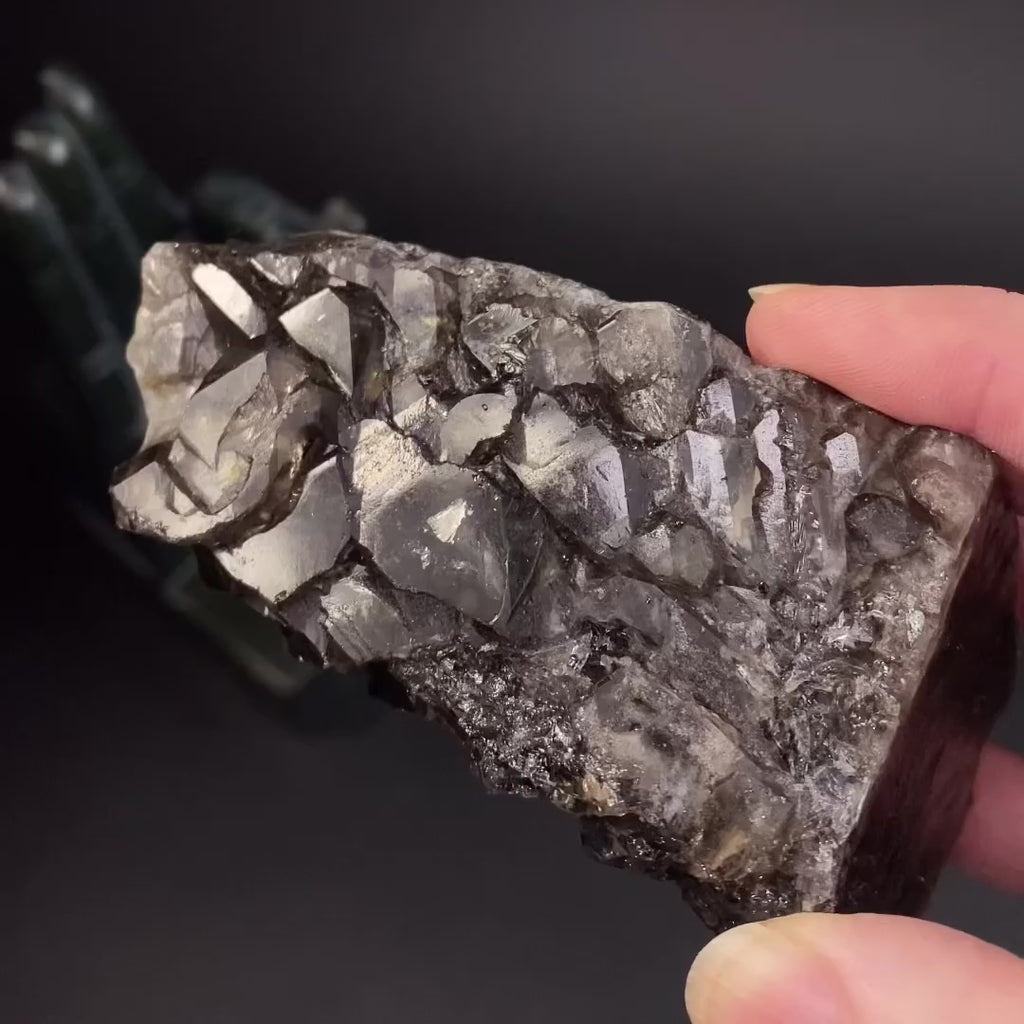Smoky elestial quartz from Brazil is a unique and captivating variety of quartz. Known for its intricate layers and smoky coloration, it features small terminated formations that create a distinctive appearance. This type of quartz is believed to have metaphysical properties that can facilitate deep spiritual connections and provide a sense of wisdom and appreciation. It's often sought after for its beauty and the belief in its ability to act as a window to the spiritual world, offering protection and enlightenment. The most significant deposits of smoky elestial quartz are found in Minas Gerais, Brazil, making it a rare and valuable find for collectors and enthusiasts alike.
