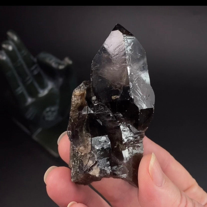 Smoky scepter-like quartz crystal cluster.