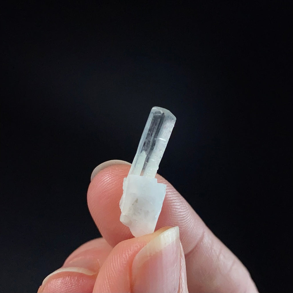 Beautiful terminated aquamarine crystal that has a small amount of feldspar at the base.